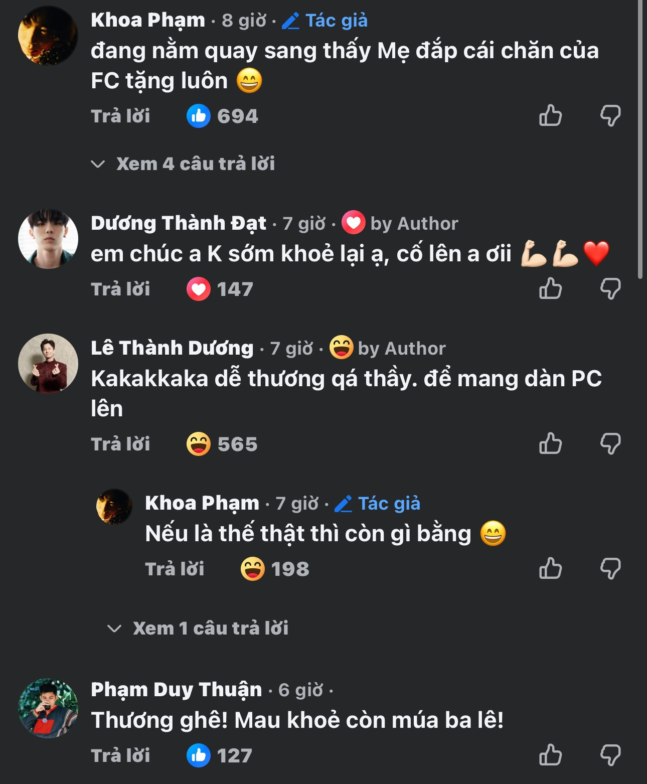 Các Anh trai lẫn Anh tài vào bình luận, chúc Karik sớm bình phục.