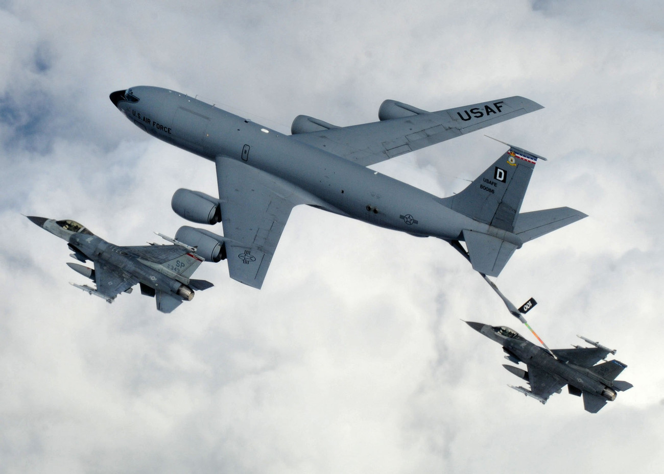 Thông qua hệ thống này, KC-135 có thể bơm hàng chục tấn nhiên liệu sang máy bay khác trong thời gian ngắn, cho phép các tiêm kích và oanh tạc cơ duy trì thời gian hoạt động rất dài trên không. Nhờ đó các máy bay chiến đấu của Mỹ có thể tấn công mục tiêu cách căn cứ hàng nghìn km mà không cần hạ cánh tiếp nhiên liệu.
