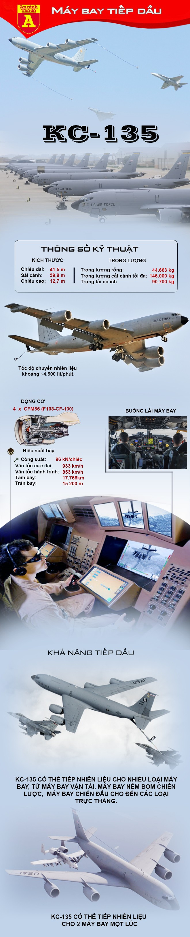 Sự cố máy bay tiếp dầu KC-135 Stratotanker của Mỹ rơi tại Iraq mới đây đã làm nổi bật vai trò đặc biệt của loại phi cơ hậu cần chiến lược này. Dù được thiết kế từ giữa thế kỷ 20, KC-135 vẫn là loại máy bay tiếp dầu có số lượng lớn nhất đang phục vụ trong Không quân Mỹ và đóng vai trò then chốt trong mọi chiến dịch không kích tầm xa.