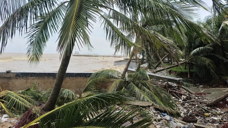 Khu du lịch Hải Tiến (Thanh Hóa) hứng chịu thiệt hại nặng nề sau cơn bão số 10, với tuyến kè, đường ven biển và các công trình du lịch bị sóng lớn và gió mạnh tàn phá trực tiếp. Bão đã qua, nhưng hiện tại khắp nơi vẫn là gạch đá, đất cát và cây cối gãy đổ ngổn ngang.