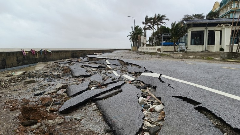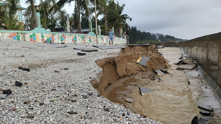 Hạ tầng ven biển Hải Tiến thiệt hại nặng nề.