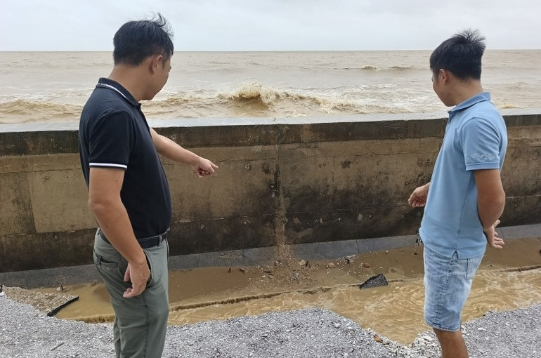 Ông Lê Duy Trọng, Trưởng phòng Kinh tế Hạ tầng, Ủy ban nhân dân xã Hoằng Tiến, cho biết: "Chỗ bờ kè đã hỏng nhiều sau bão số 5. Trận này tàn phá quá lớn, sóng mạnh tràn qua kè kéo cả cát bên dưới, gây sạt lở chân kè. Nguồn kinh phí của xã hạn hẹp, nên chỉ có cách đề xuất tỉnh hỗ trợ. Ai cũng nhìn thấy thiệt hại, còn mùa du lịch năm sau cũng phải tính đến".