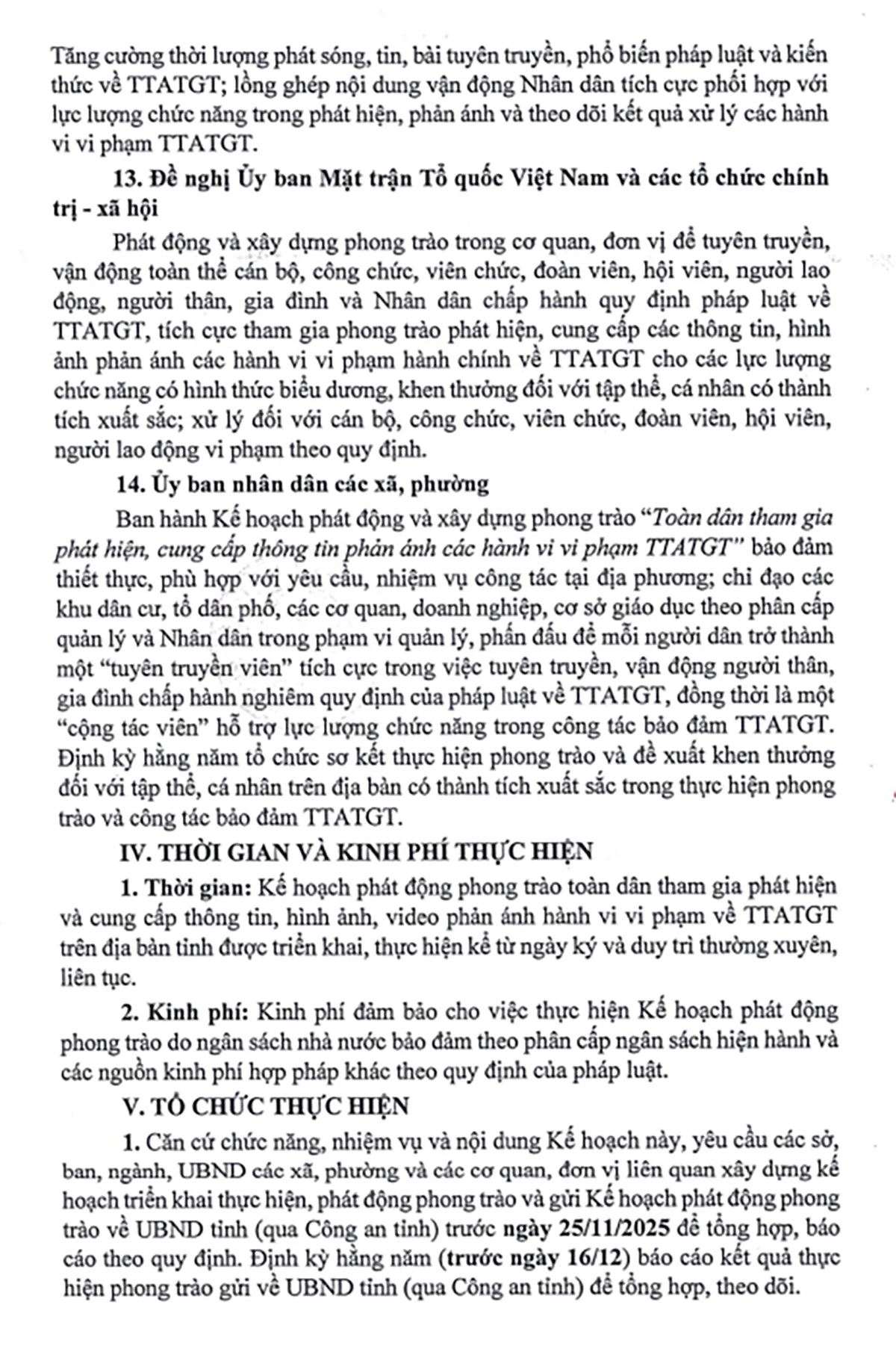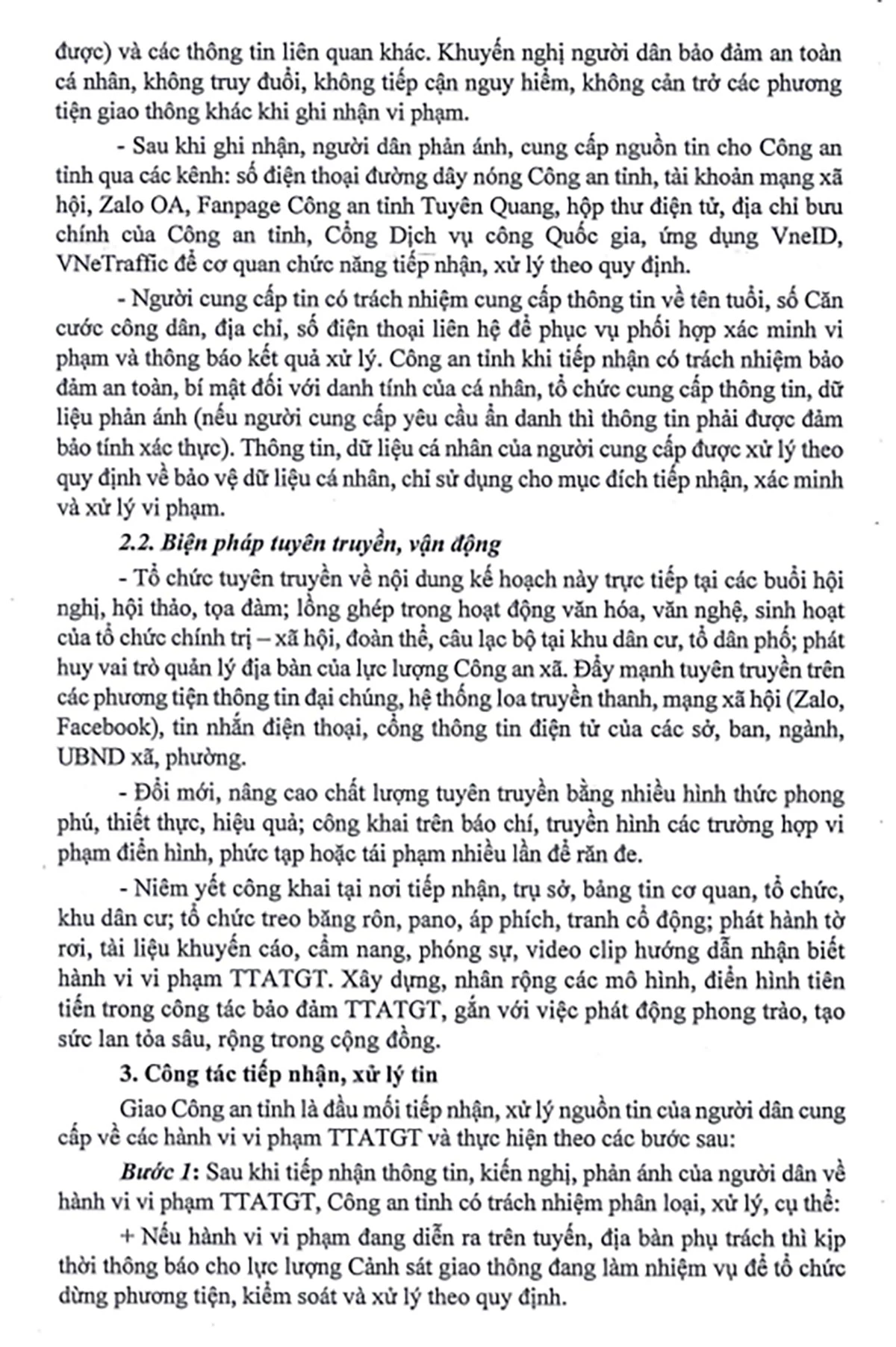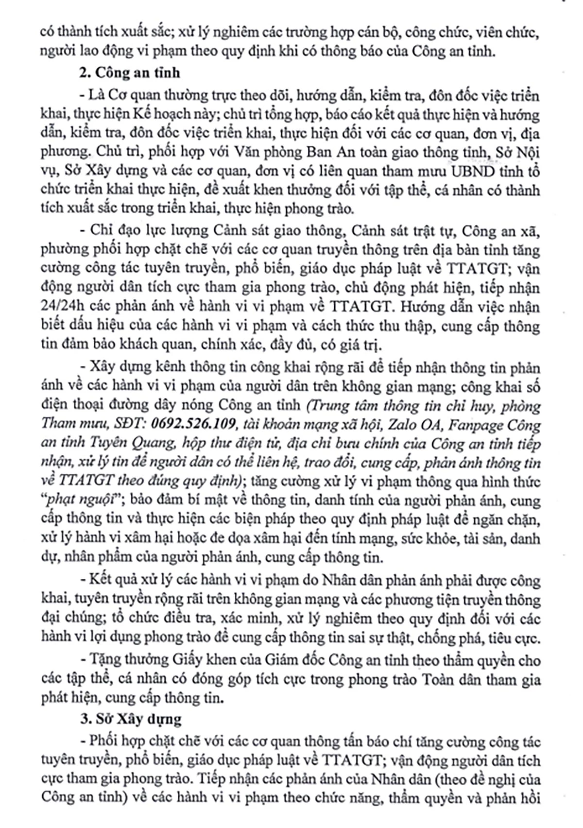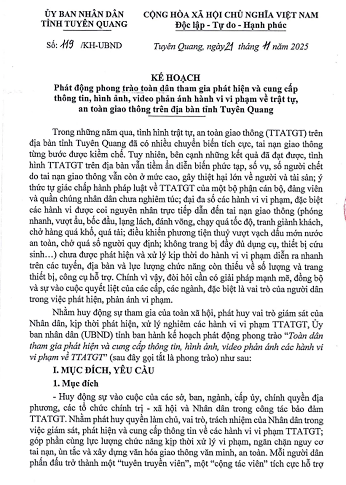 Kế hoạch phát động phong trào toàn dân tham gia phát hiện và cung cấp thông tin, hình ảnh, video phản ánh hành vi vi phạm về trật tự an toàn giao thông trên địa bàn tỉnh Tuyên Quang