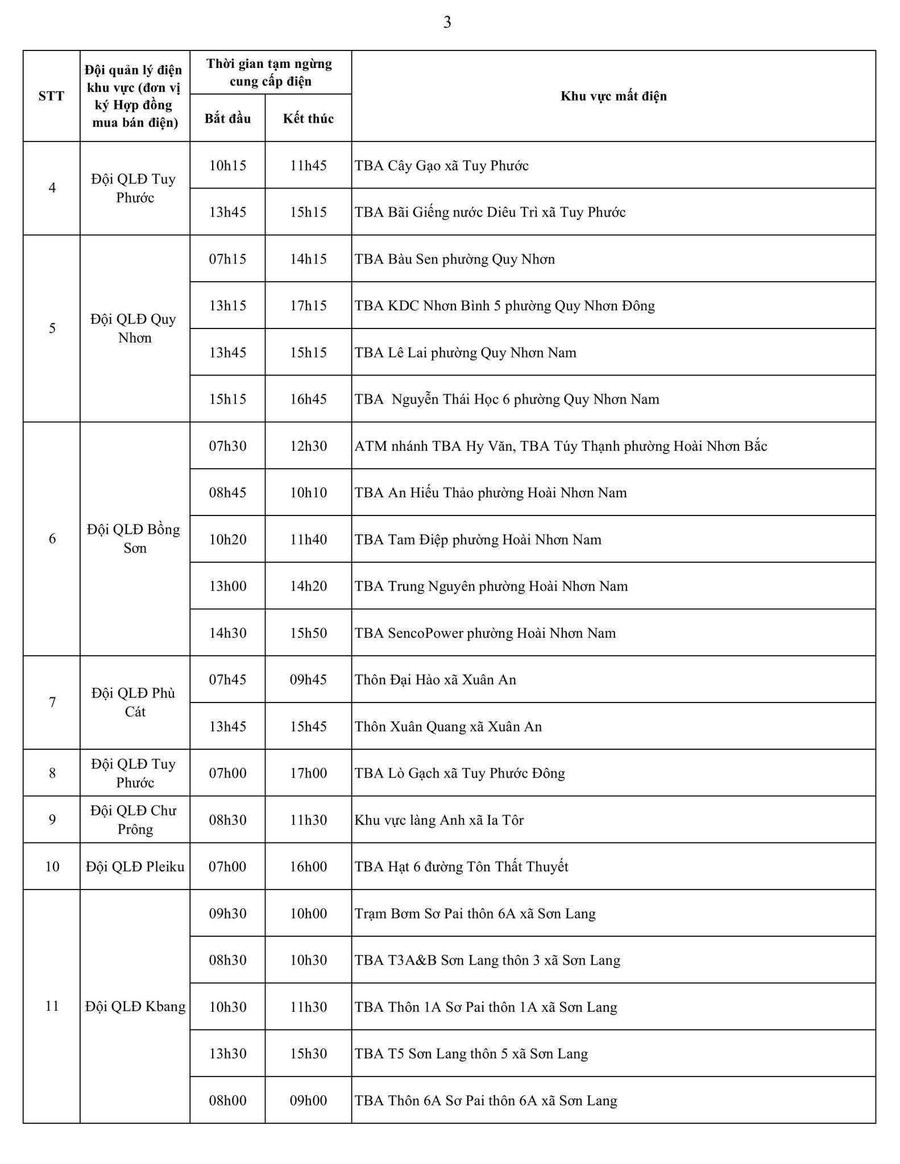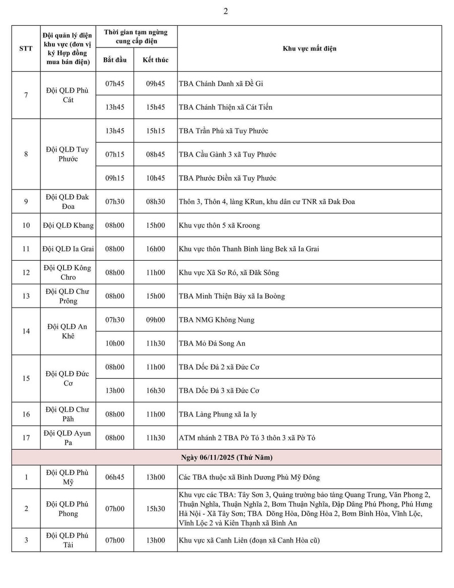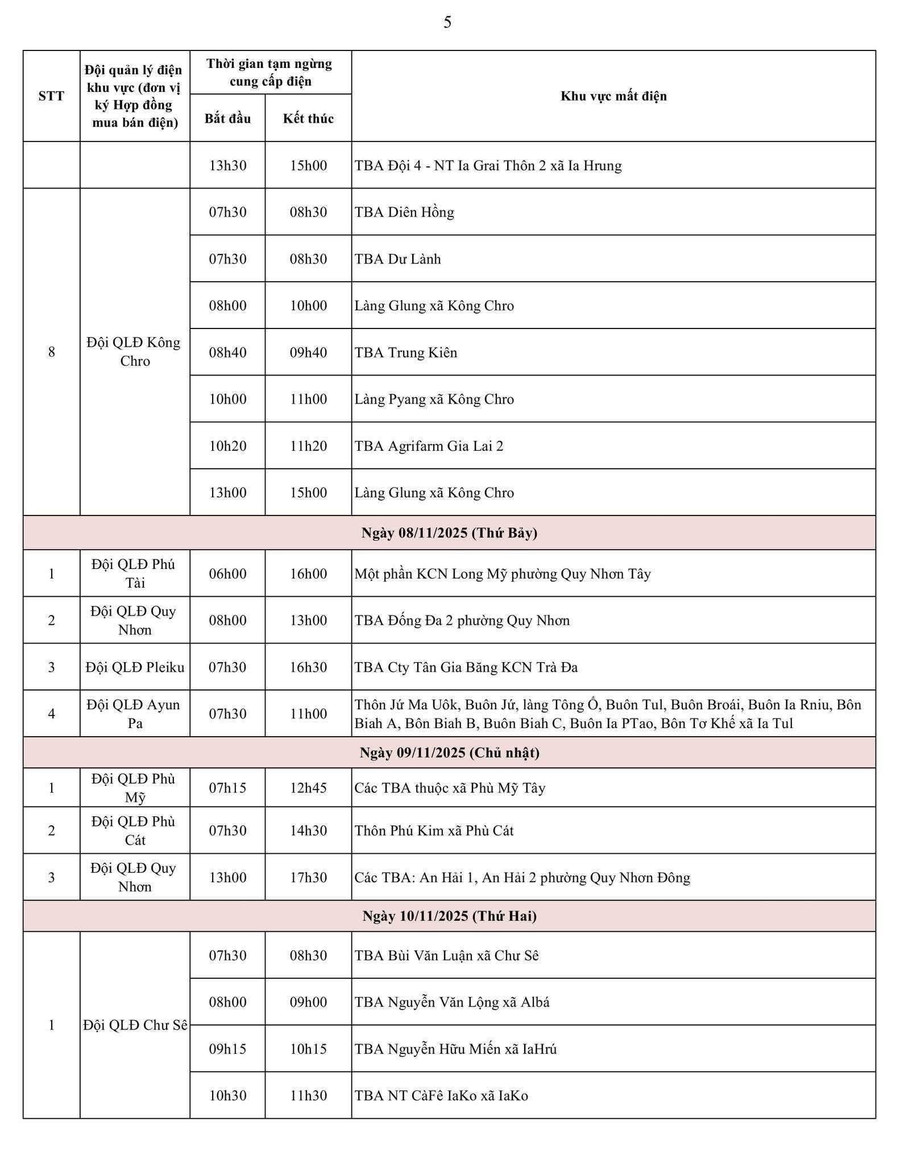 Kế hoạch tạm ngừng cung cấp điện tỉnh Gia Lai