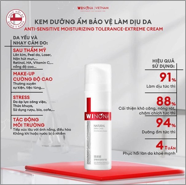 Kem dưỡng ẩm bảo vệ làm dịu da Winona 50g là sản phẩm nổi bật đến từ thương hiệu dược mỹ phẩm Winona, đặc biệt dành riêng cho làn da nhạy cảm, dễ kích ứng.