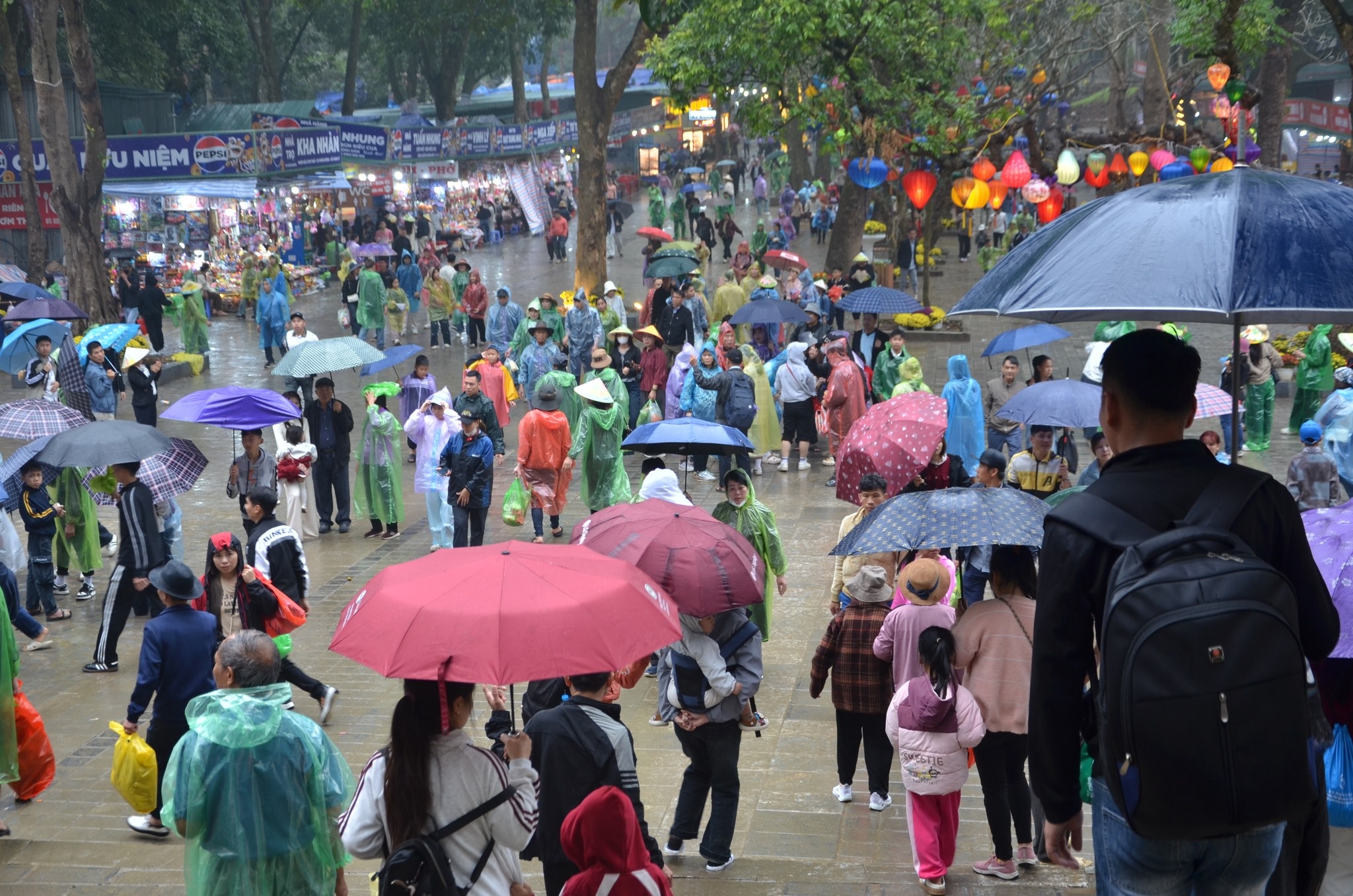 Du khách đội mưa đổ về khai hội chùa Hương sáng 22/2. Ảnh: BTC.