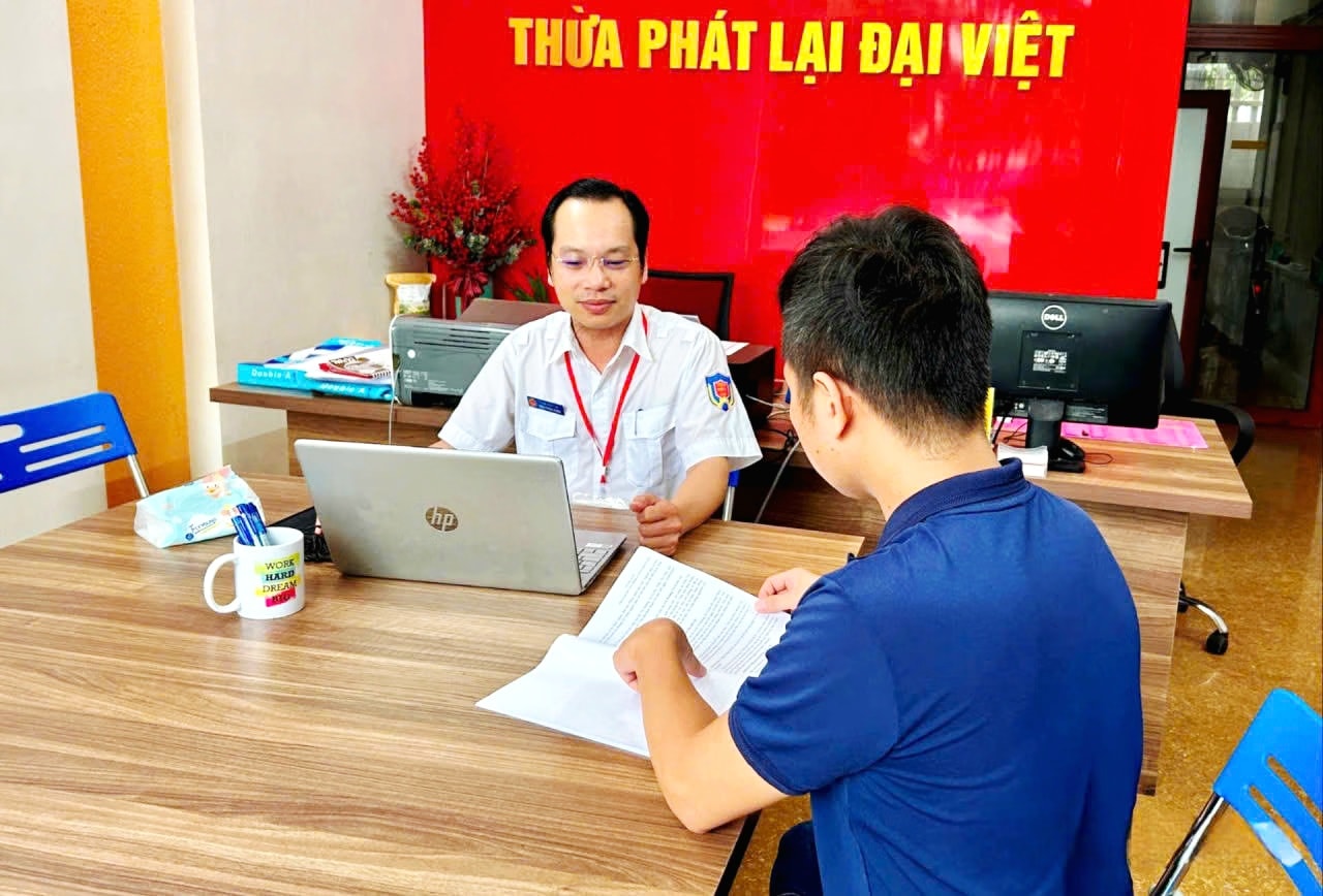 Tư vấn cho khách hàng tại Văn phòng Thừa phát lại Đại Việt. Ảnh: Thu Nguyễn