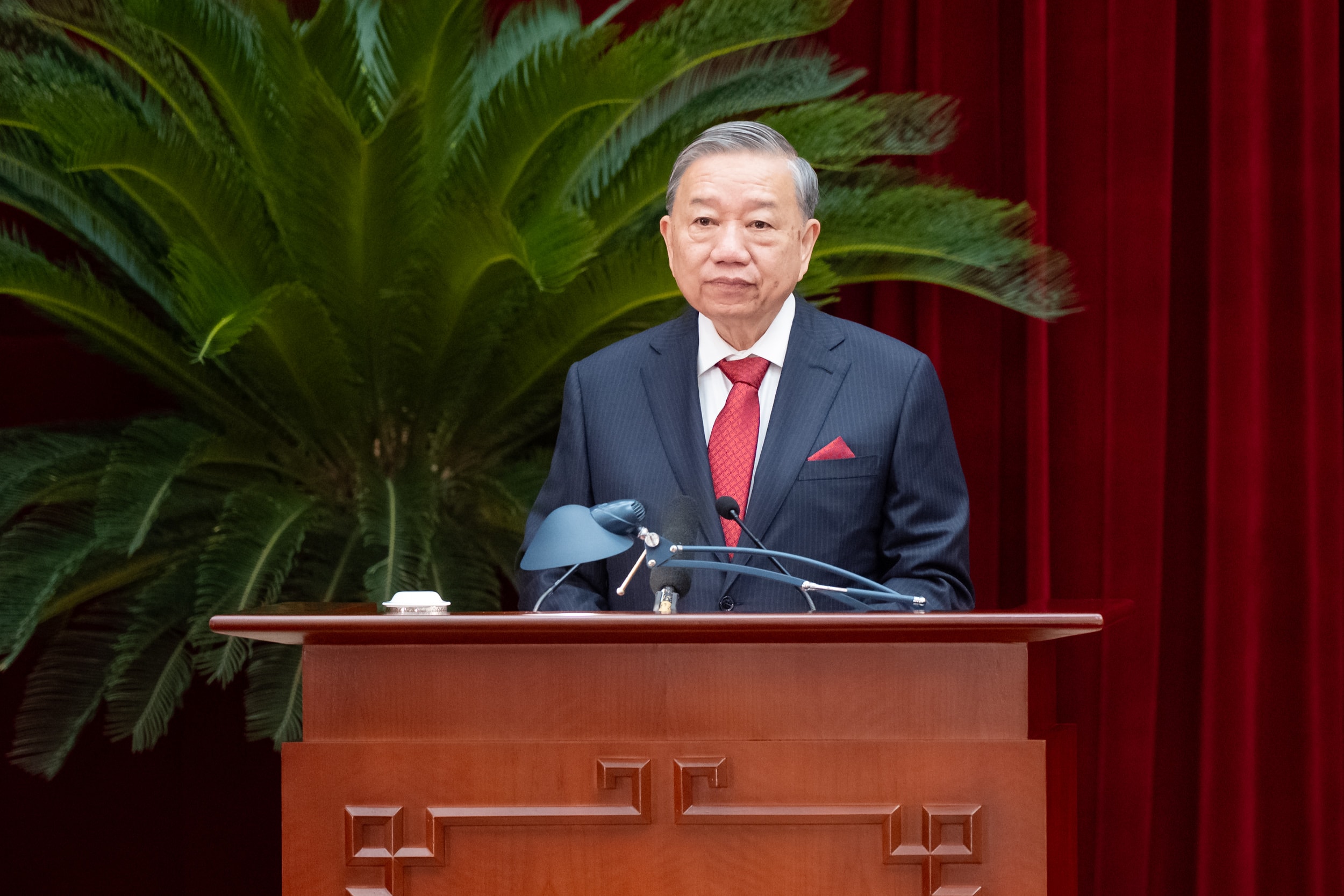 Tổng Bí thư Tô Lâm phát biểu tại Hội nghị Trung ương 13, Khóa XIII. Ảnh: Phạm Thắng