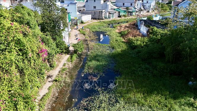 Rạch Bà Bầu (phường Long Xuyên, tỉnh An Giang) tồn đọng bùn và rác thải gây ô nhiễm nghiêm trọng do dự án chỉnh trang đô thị kéo dài nhiều năm chưa hoàn thiện. Ảnh tư liệu: Thanh Sang/TTXVN