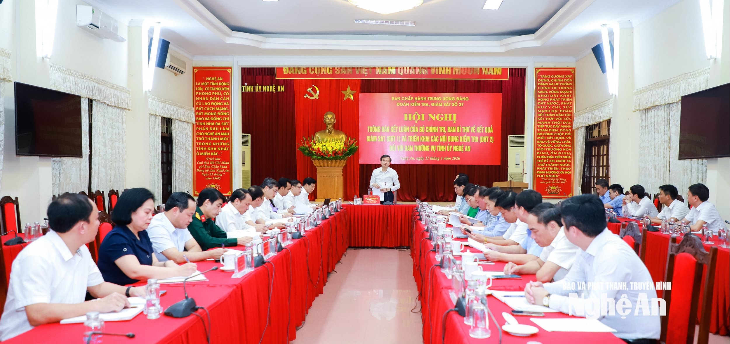 Đồng chí bày tỏ tin tưởng thông qua đợt kiểm tra lần này, Nghệ An sẽ tiếp thu được nhiều kinh nghiệm thực tiễn, các định hướng quan trọng từ Trung ương để tiếp tục hoàn thiện phương thức lãnh đạo, điều hành, tháo gỡ hiệu quả các “điểm nghẽn”, qua đó thúc đẩy phát triển kinh tế - xã hội, nâng cao đời sống nhân dân và thực hiện thắng lợi các mục tiêu, nhiệm vụ chính trị đã đề ra.