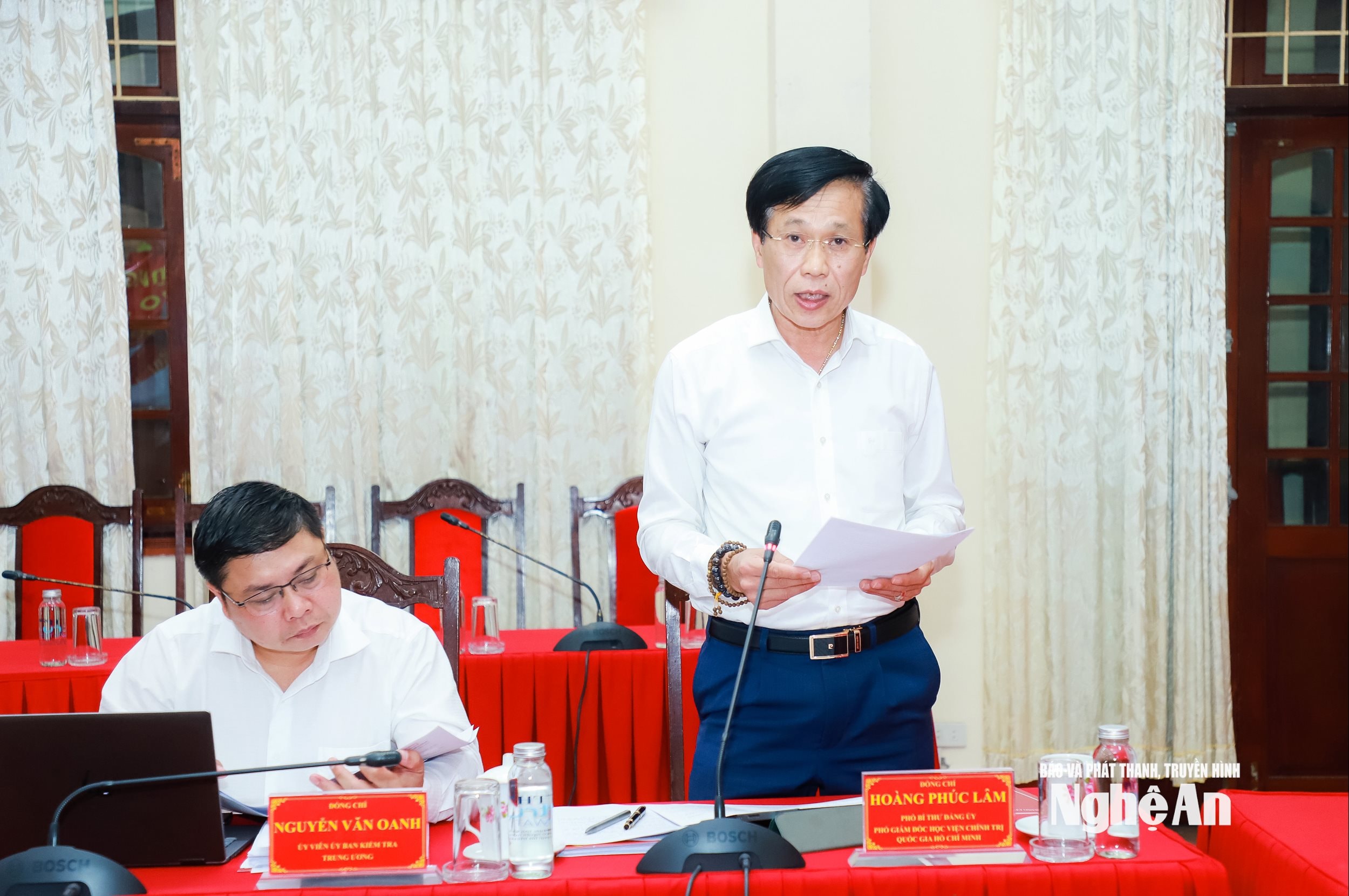 Đồng chí Hoàng Phúc Lâm - Phó Bí thư Đảng ủy, Phó Giám đốc Học viện Chính trị quốc gia Hồ Chí Minh trình bày báo cáo kết quả giám sát. Ảnh: Thành Duy