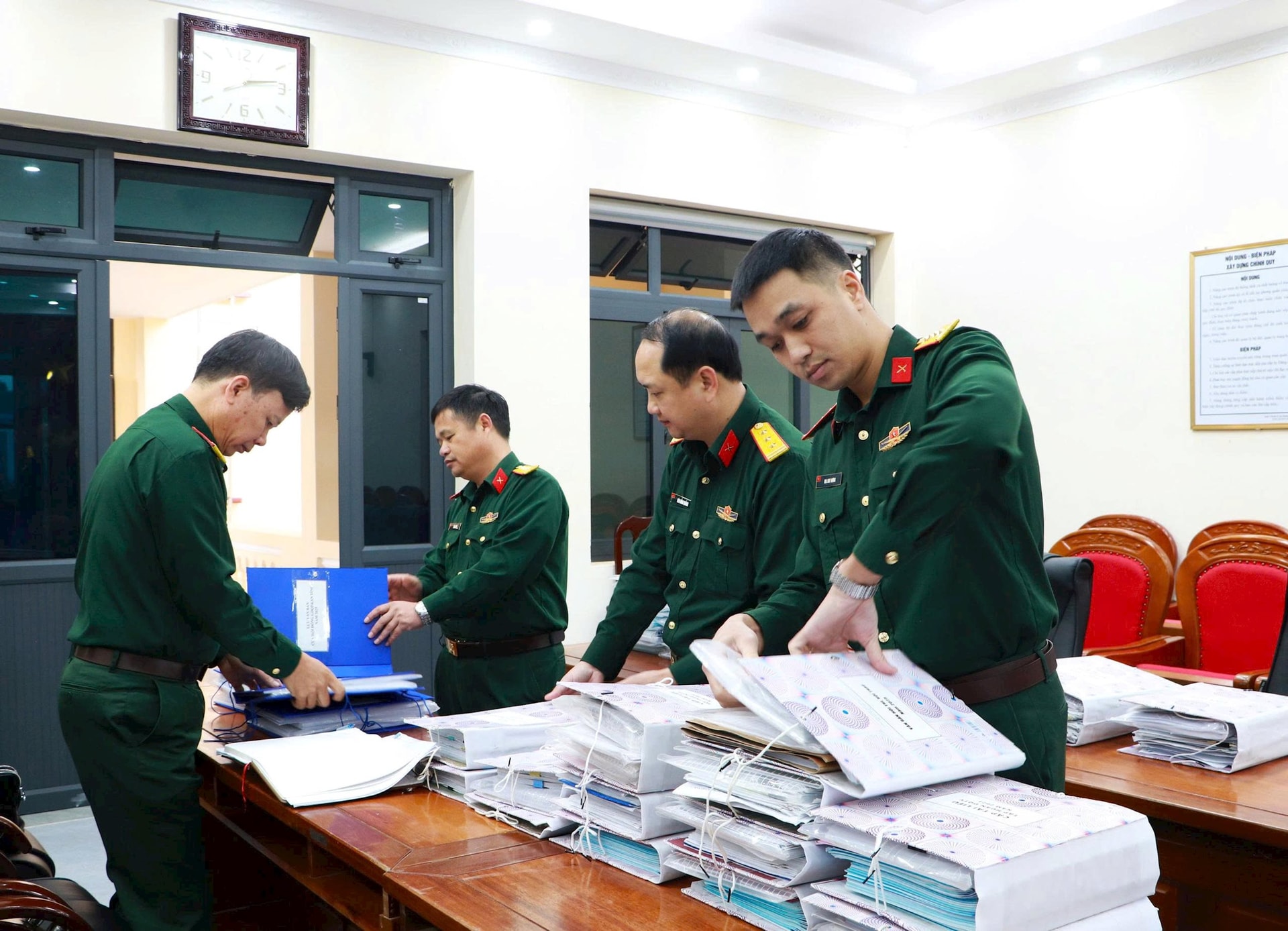 Đoàn công tác kiểm tra hệ thống sổ sách các chuyên ngành quân sự.