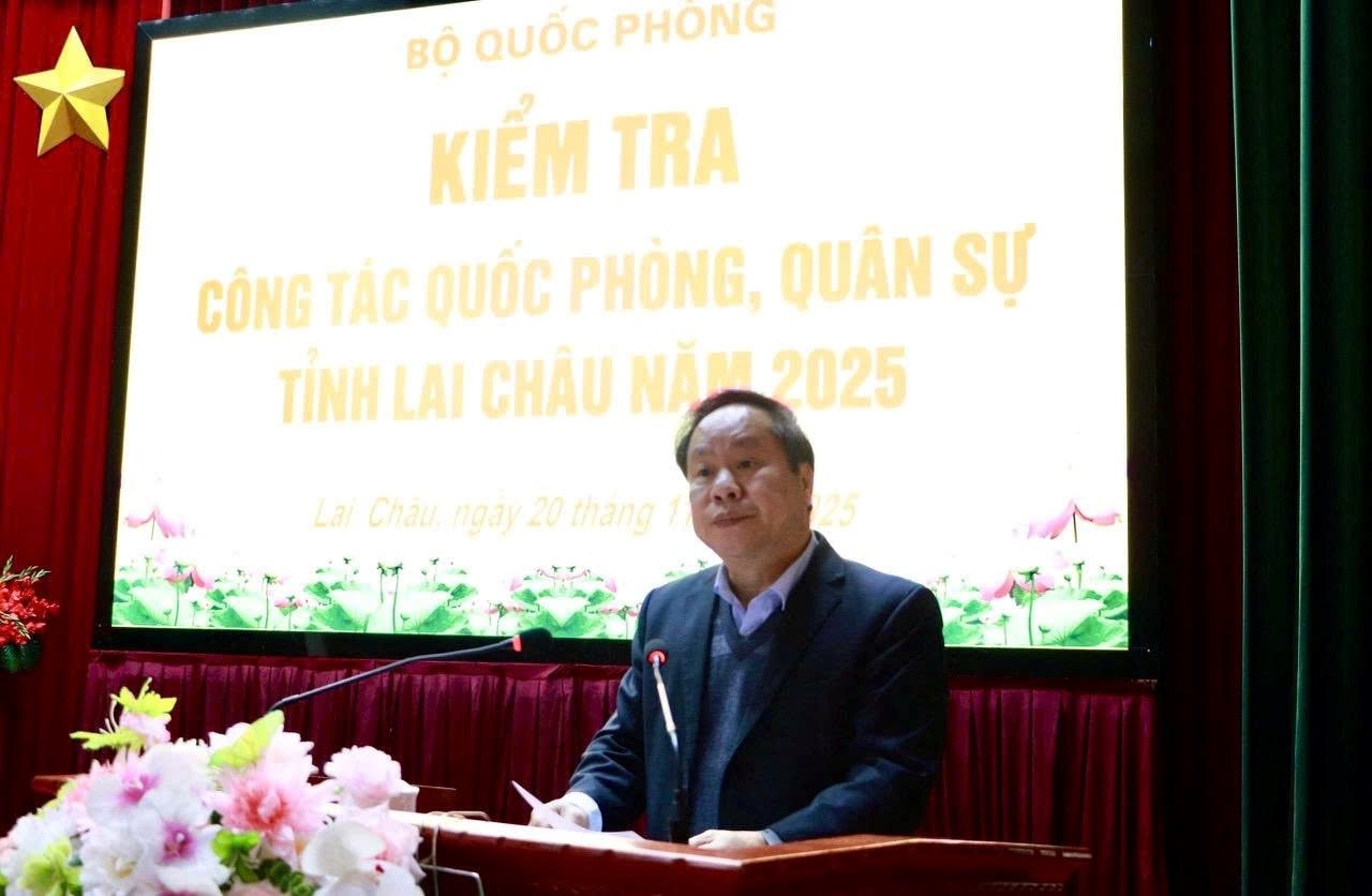 Phát biểu tại Hội nghị, đồng chí Tống Thanh Hải - Phó Chủ tịch Thường trực UBND tỉnh bày tỏ vinh dự khi tỉnh Lai Châu được đón Đoàn kiểm tra Bộ Quốc phòng tiến hành kiểm tra, kết luận công tác quốc phòng, quân sự địa phương năm 2025. Đồng chí khẳng định đây là sự quan tâm đặc biệt của Bộ Quốc phòng đối với tỉnh Lai Châu nói riêng và các tỉnh biên giới nói chung; đồng thời là dịp để Tỉnh nhìn nhận khách quan, toàn diện kết quả thực hiện nhiệm vụ quốc phòng, quân sự, nhất là trong năm đầu triển khai mô hình chính quyền địa phương 02 cấp.