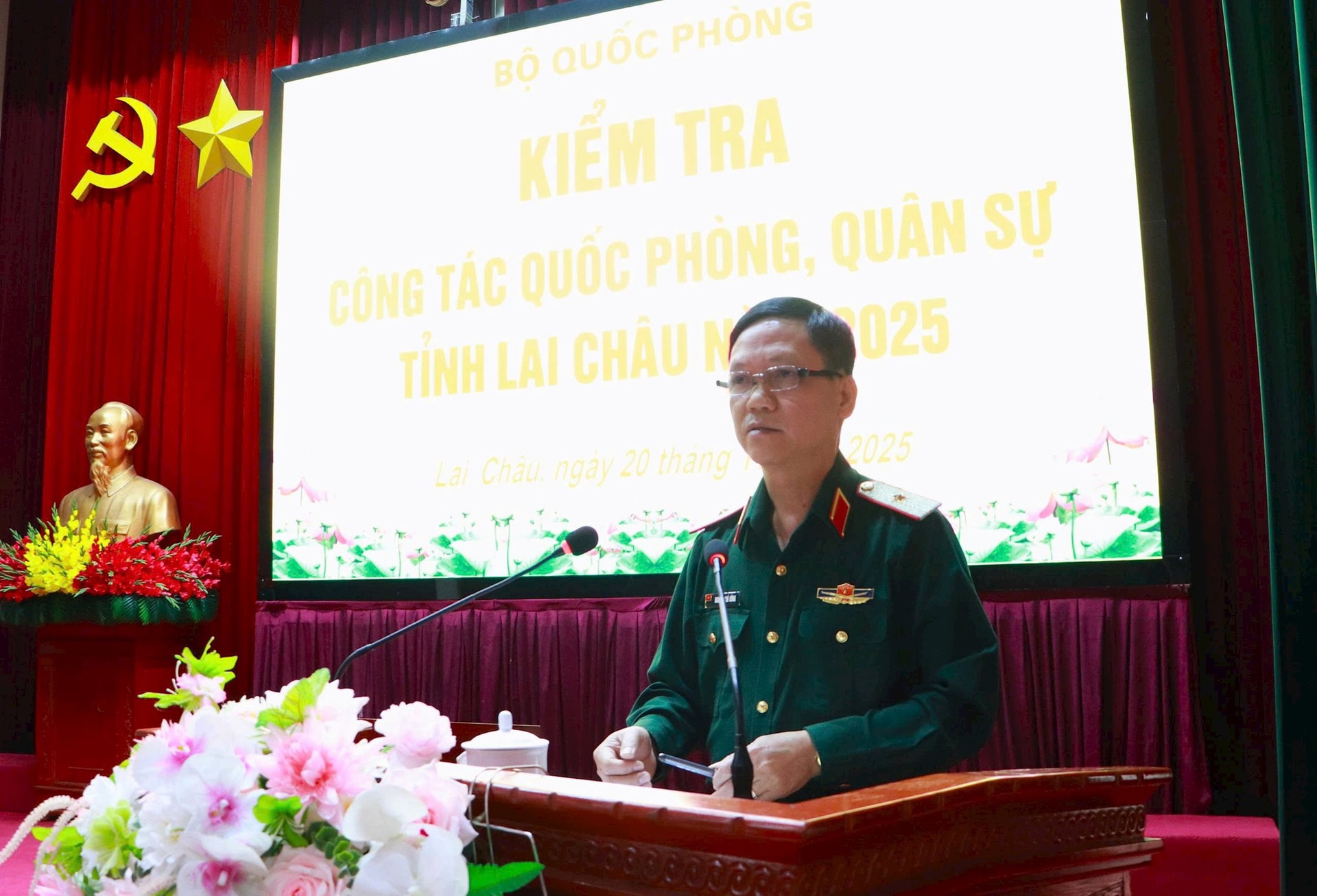 Kết luận công tác kiểm tra tại tỉnh Lai Châu, đồng chí Thiếu tướng Nguyễn Chí Công - Phó Cục trưởng Cục Dân quân tự vệ/Bộ Tổng Tham mưu đánh giá cao những kết quả mà tỉnh Lai Châu đã đạt được trong thực hiện nhiệm vụ công tác quốc phòng, quân sự địa phương năm 2025, nhất là đã ban hành đầy đủ các văn bản chỉ đạo, điều hành liên quan. Tỉnh đã thực hiện hiệu quả kết hợp phát triển kinh tế, văn hóa, xã hội gắn với xây dựng thế trận trong khu vực phòng thủ, góp phần tăng thu ngân sách nhà nước tại địa phương…