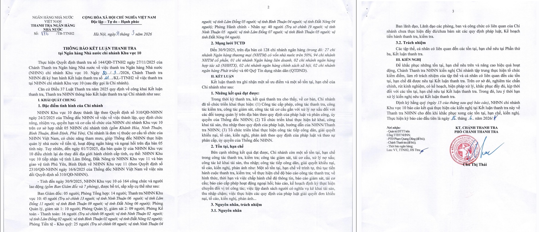 Thanh tra Ngân hàng Nhà nước Việt Nam vừa thông báo kết luận thanh tra đối với Ngân hàng Nhà nước chi nhánh Khu vực 10.