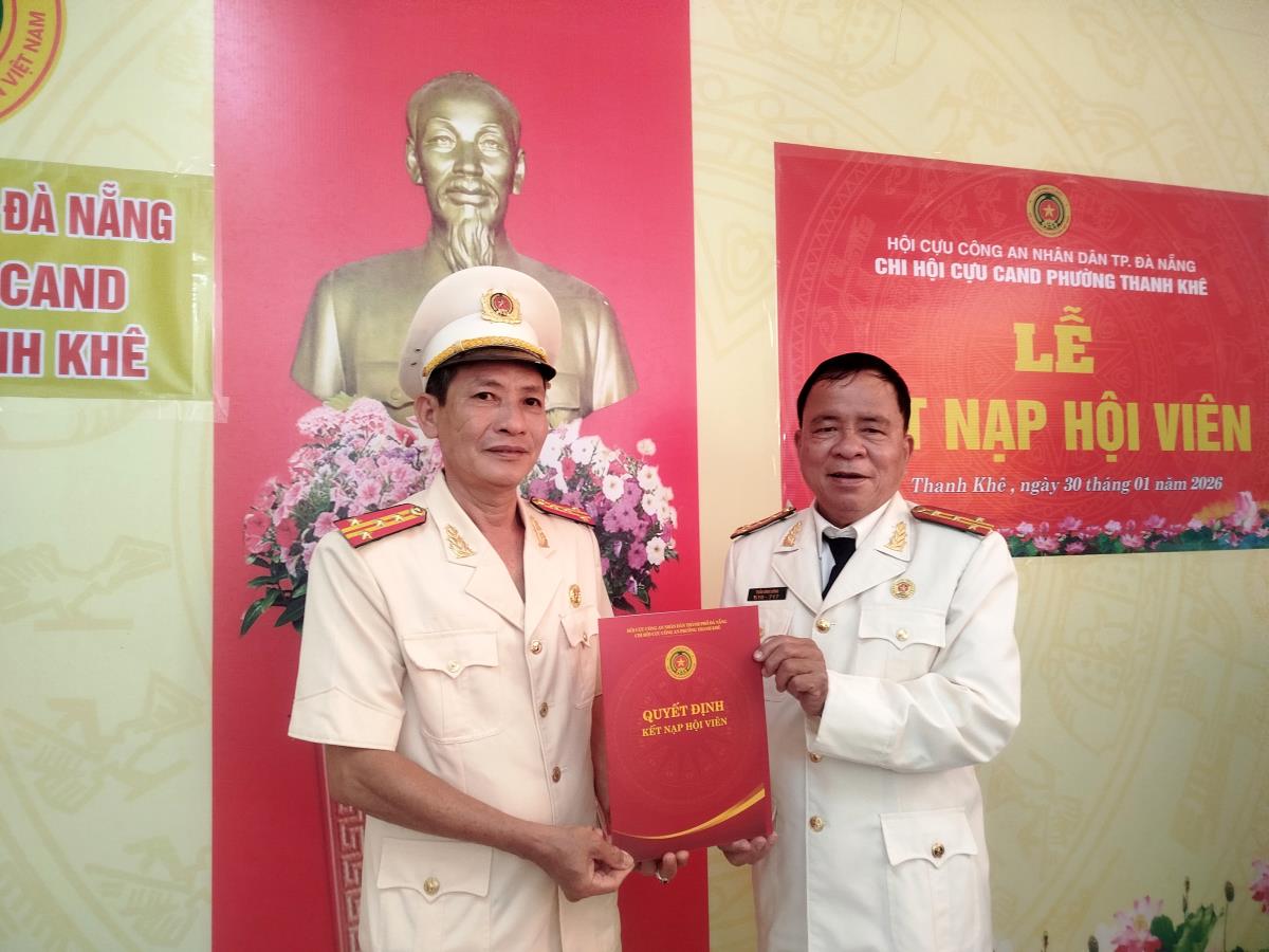 Tại buổi lễ, đã thông qua Quyết định kết nạp 5 hội viên mới vào Chi hội Cựu Công an nhân dân phường. Các hội viên là những đồng chí nguyên là cán bộ, chiến sĩ Công an đã nghỉ hưu qua nhiều thời kỳ, có phẩm chất đạo đức tốt, đáp ứng đầy đủ tiêu chuẩn theo quy định; luôn tích cực, gương mẫu trong đời sống và đóng góp cho phong trào bảo đảm an ninh trật tự ở địa phương. Như vậy, tính đến thời điểm này, Chi hội Cựu Công an nhân dân phường Thanh Khê có tổng cộng 485 hội viên tham gia sinh hoạt.