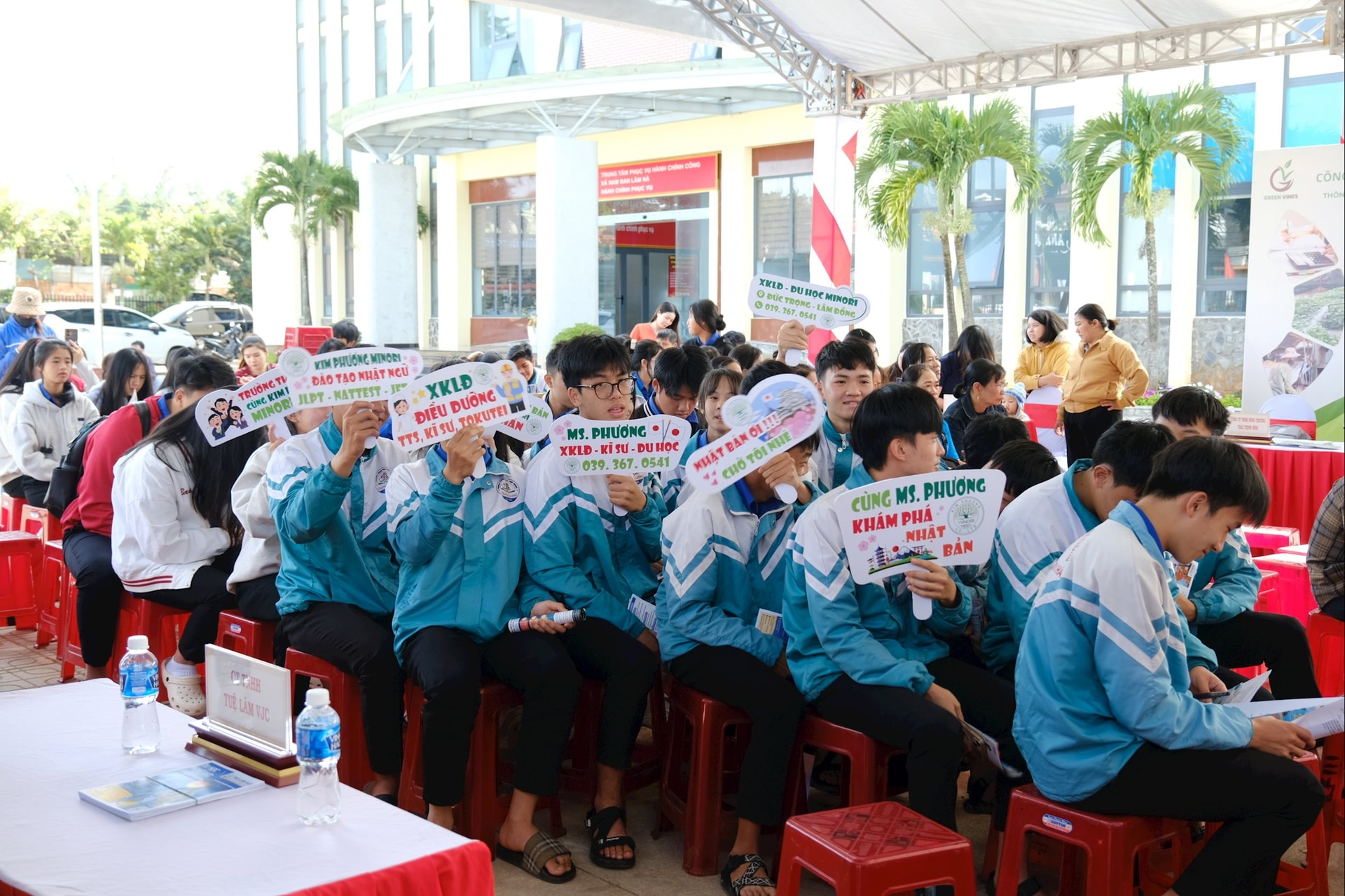 Tại đây, các em được tư vấn, định hướng nghề nghiệp theo sở trường, năng lực; được cung cấp thông tin về học nghề, học cao đẳng, đại học, cũng như các chính sách du học nghề, xuất khẩu lao động. Qua đó, giúp học sinh có cái nhìn rõ ràng hơn về con đường học tập và việc làm trong tương lai, hạn chế tình trạng lựa chọn nghề nghiệp thiếu thông tin.