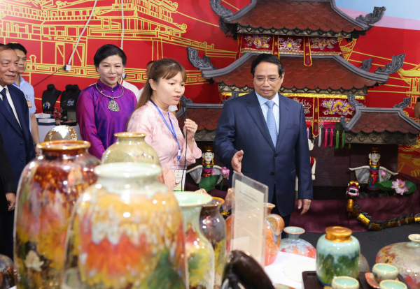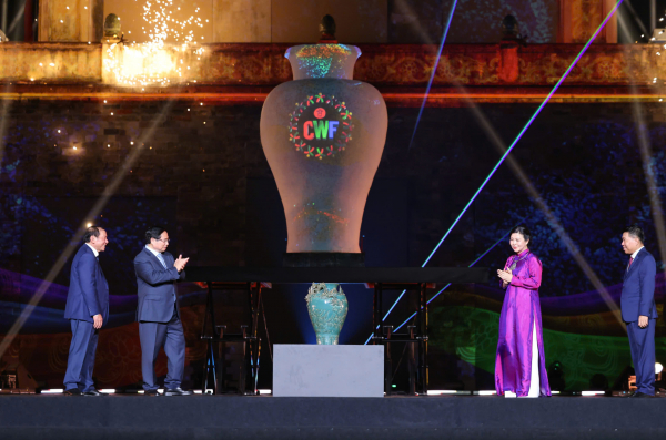 Tại lễ khai mạc, cùng với chương trình nghệ thuật đặc sắc, các đại biểu, khán giả có một bất ngờ đầy thú vị khi chứng kiến Thủ tướng Phạm Minh Chính cùng bà Ngô Phương Ly, Phu nhân Tổng Bí thư Tô Lâm và các đại biểu trực tiếp tạo ra tác phẩm nghệ thuật thủ công trên nền cốt bình gốm Việt Nam.