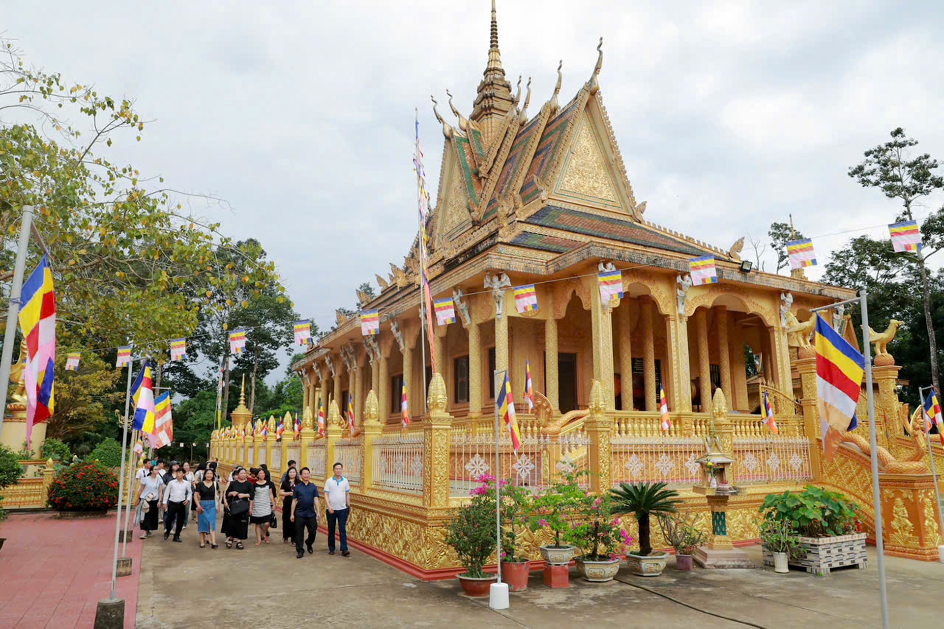 Đoàn xúc tiến du lịch của Sở Du lịch Hà Nội tham quan, khảo sát điểm đến và tìm hiểu văn hóa của người Khmer ở Vĩnh Long. Ảnh: Lệ Quyên