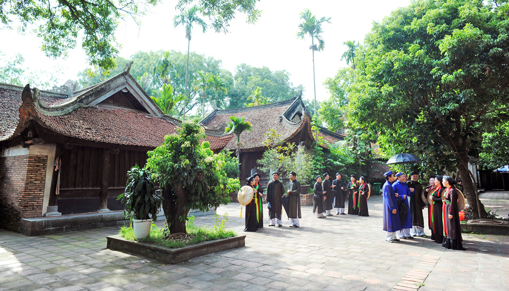 Biểu diễn dân ca quan họ - Di sản văn hóa phi vật thể đại diện của nhân loại tại chùa Vĩnh Nghiêm (Di sản văn hóa thế giới). Ảnh: Việt Hưng.