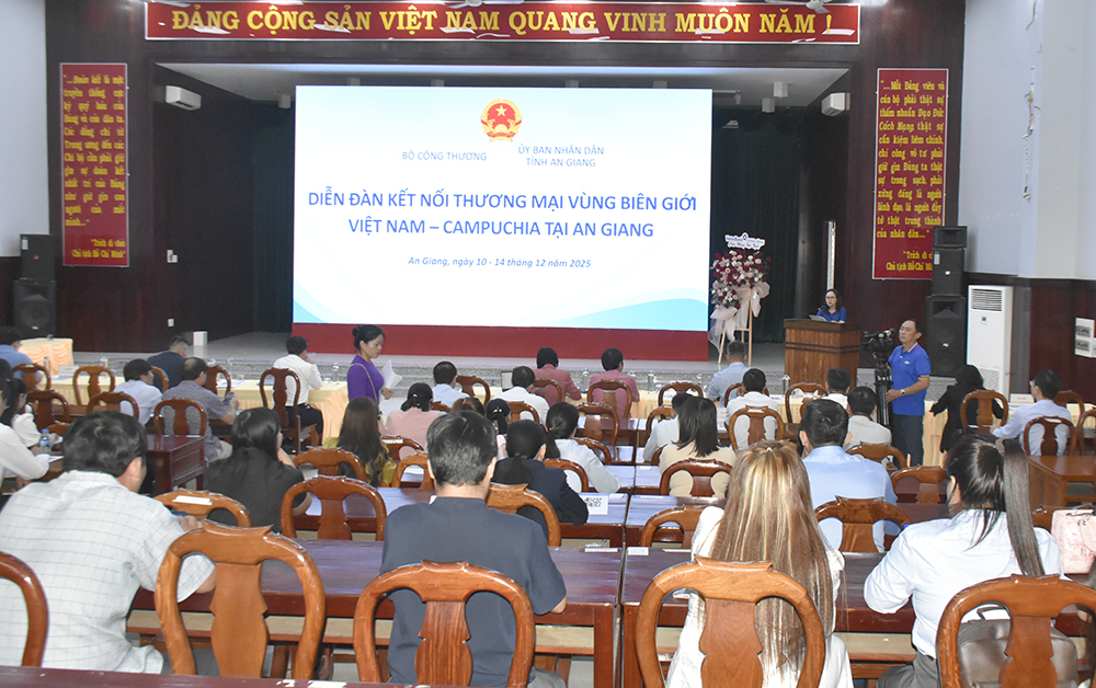 Diễn đàn kết nối thương mại vùng biên giới Việt Nam - Campuchia tại tỉnh An Giang diễn ra từ ngày 10 đến 14-12, do Bộ Công thương phối hợp UBND tỉnh An Giang tổ chức tại phường Tịnh Biên, nhằm tạo điều kiện thuận lợi cho các doanh nghiệp, cơ sở sản xuất kinh doanh, tổ hợp tác cũng như các doanh nghiệp tại Vương quốc Campuchia trong việc kết nối, tiêu thụ và cung ứng hàng hóa.