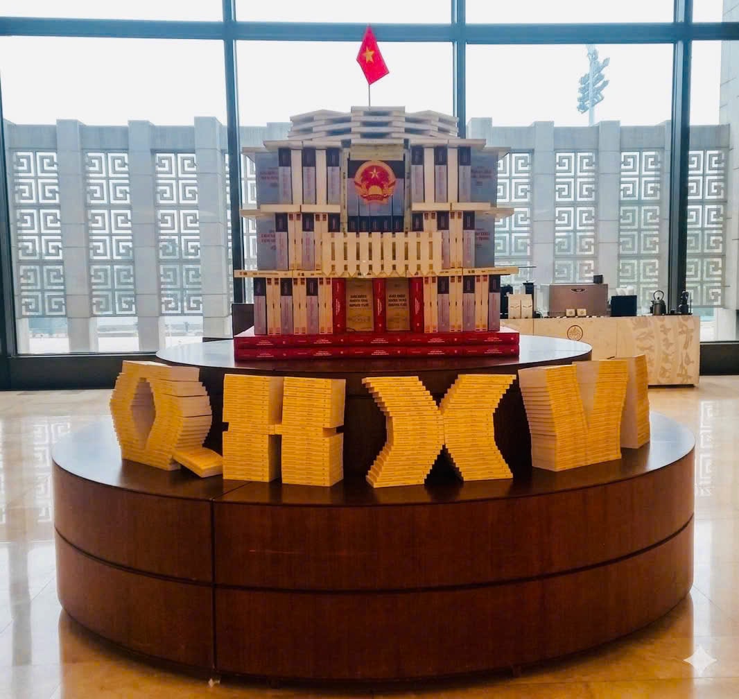 Trưng bày tại sảnh tầng 3 Nhà Quốc hội, thu hút sự quan tâm của đông đảo đại biểu Quốc hội