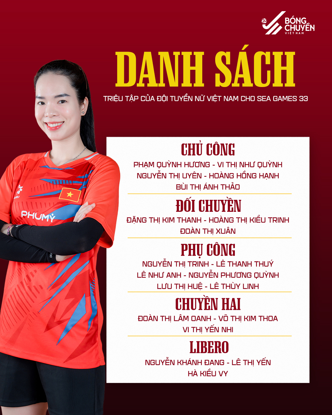 Danh sách 20 vận động viên đội tuyển bóng chuyền nữ Việt Nam tập trung chuẩn bị cho SEA Games 33. Ảnh: Fapage Bóng chuyền Việt Nam