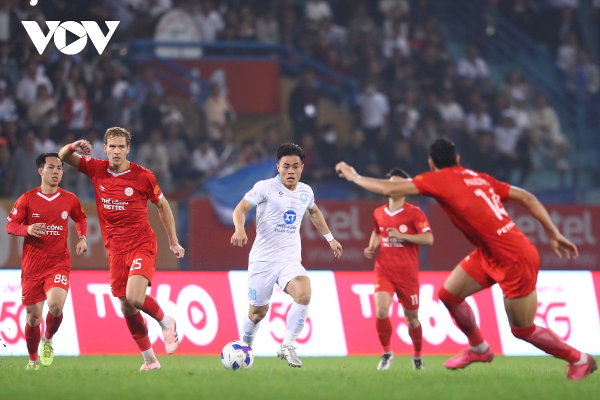 Thể Công Viettel đều cũng như Nam Định thi đấu quyết liệt trong từng pha bóng.