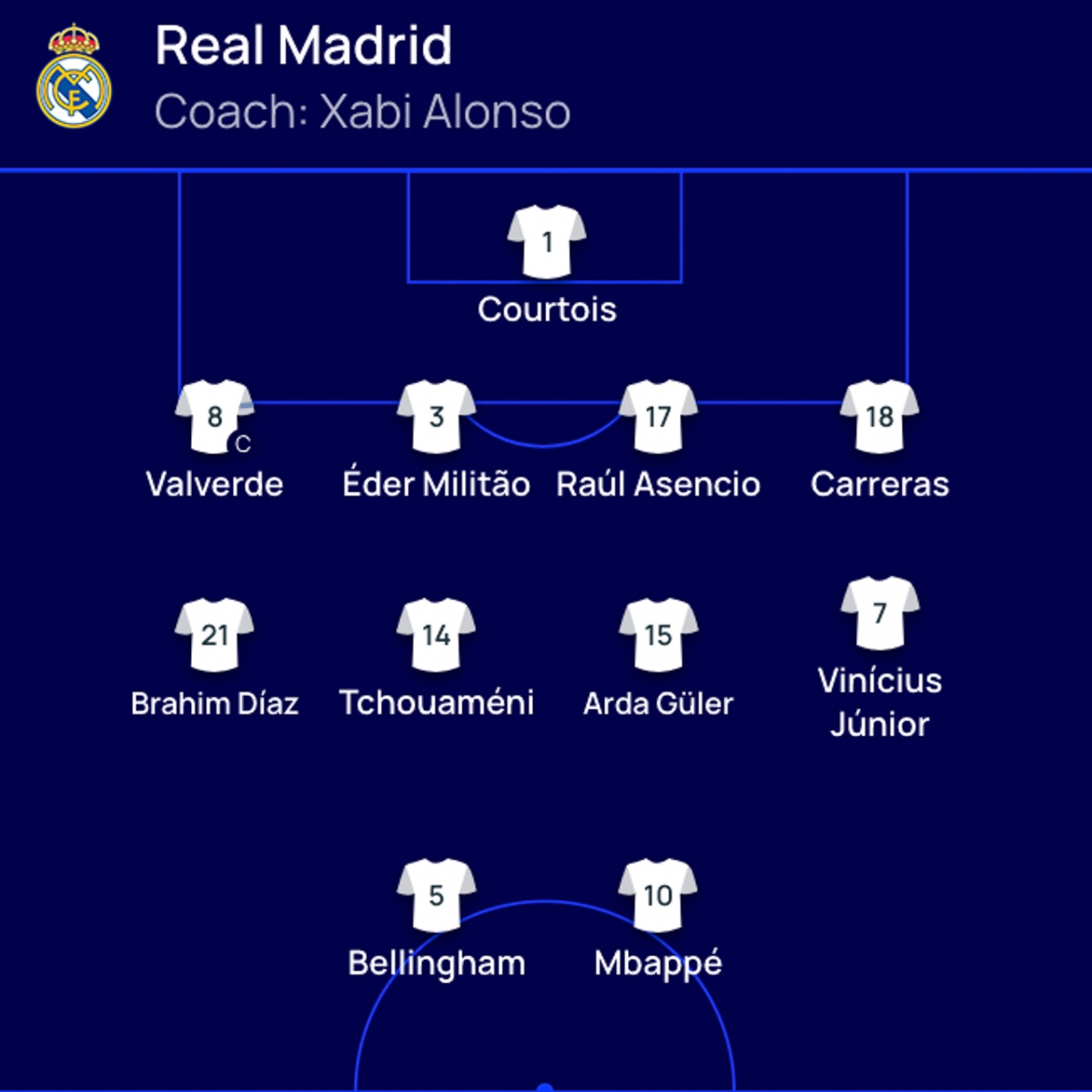 25': Không vào! Brahim Diaz có pha xâm nhập rồi nhận bóng trong vòng cấm, sau đó tung ra cú dứt điểm góc hẹp nhưng thủ thành Di Gregorio kịp thời đẩy bóng. Ngay sau đó từ pha đá phạt góc ngay sau đó, Tchouameni nhận bóng trong vòng cấm rồi sút căng nhưng bóng đập trúng cầu thủ Juventus.