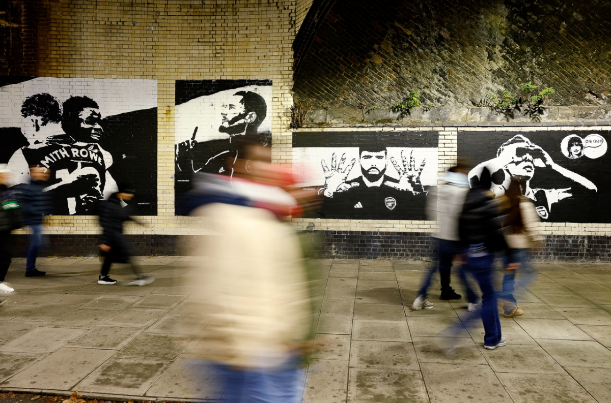 Cầu thủ hai đội khởi động trước trận đấu (Ảnh: Reuters)
