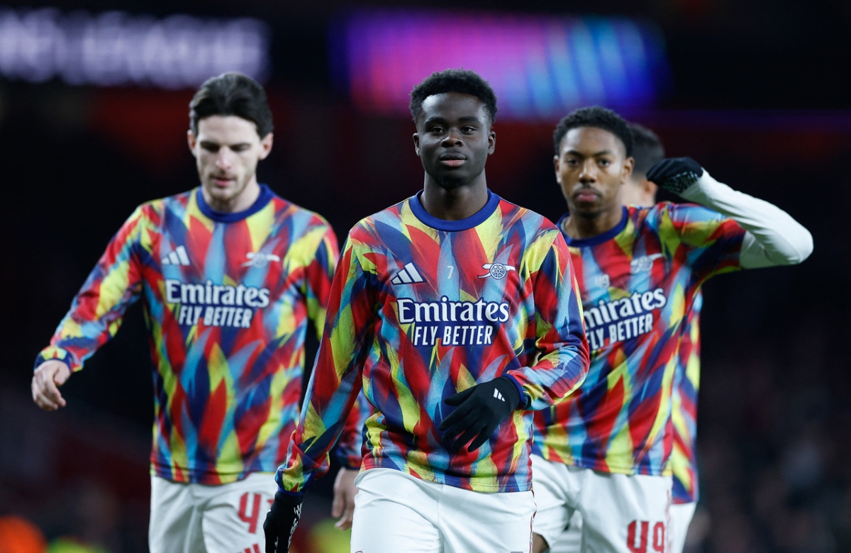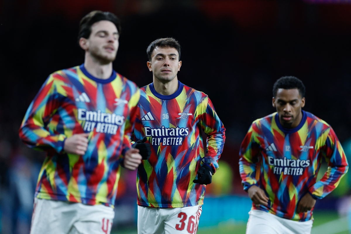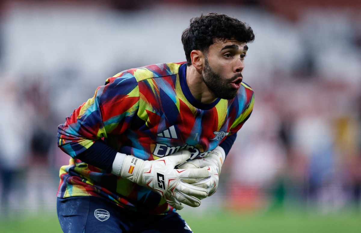 58': Không vào! Từ tình huống dàn xếp đá phạt góc quen thuộc, Saka tạt bóng để Merino băng cắt đánh đầu nhưng bóng đi chệch cột dọc đầy đáng tiếc.