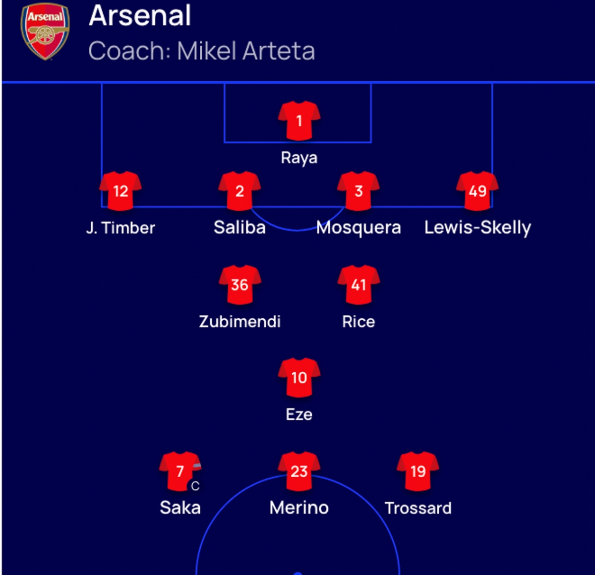 5': Không vào! Từ tình huống đá phạt chếch bên cánh phải theo hướng tấn công, Rice tạt bóng vào trong để Saliba dứt điểm. Tuy nhiên, cú đánh đầu của Saliba đưa bóng đi không chính xác.