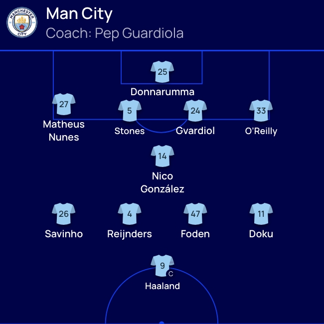 Đội hình xuất phát trận đấu Man City vs Dortmund.