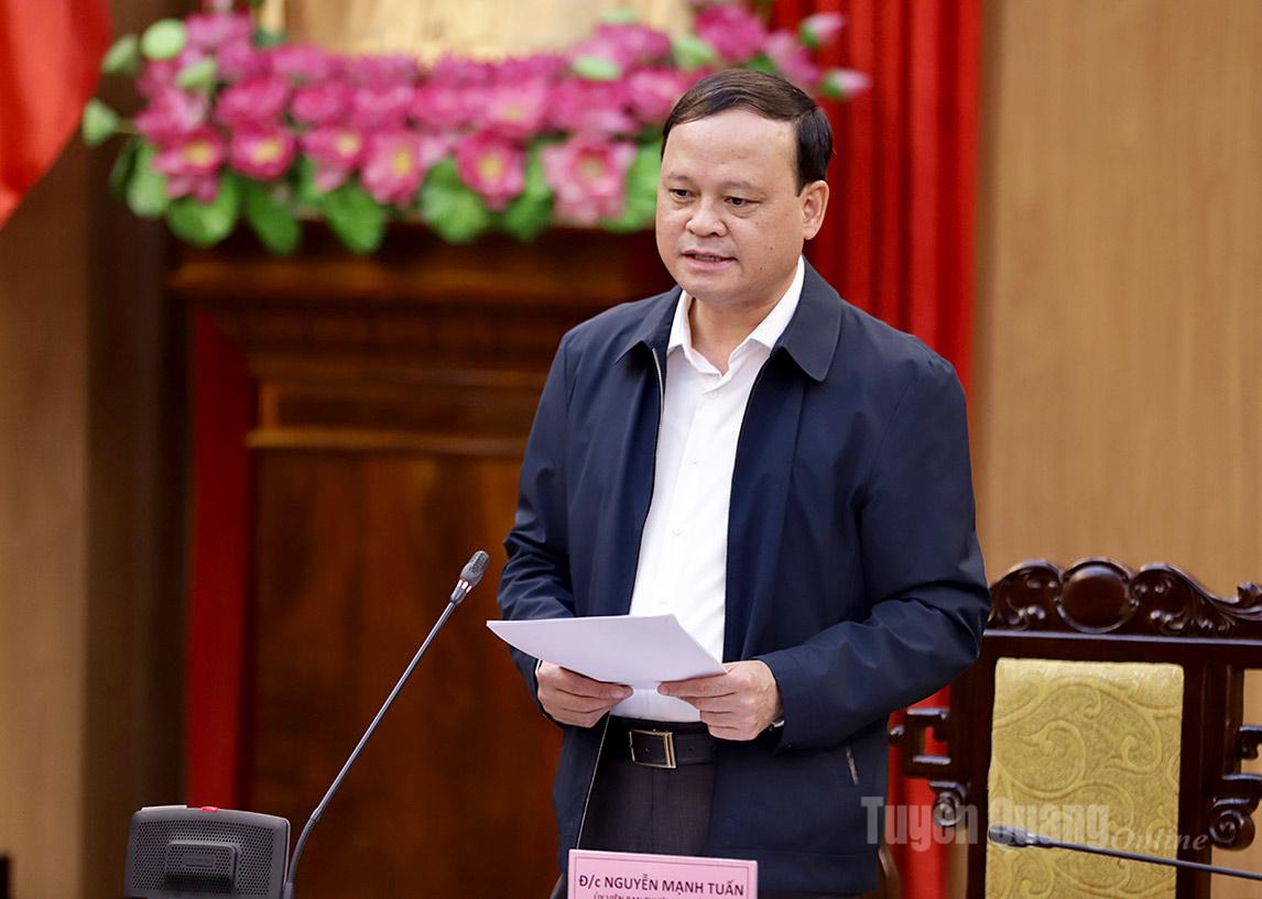 Phó Chủ tịch Thường trực UBND tỉnh Nguyễn Mạnh Tuấn điều hành phần thảo luận tại Hội nghị.