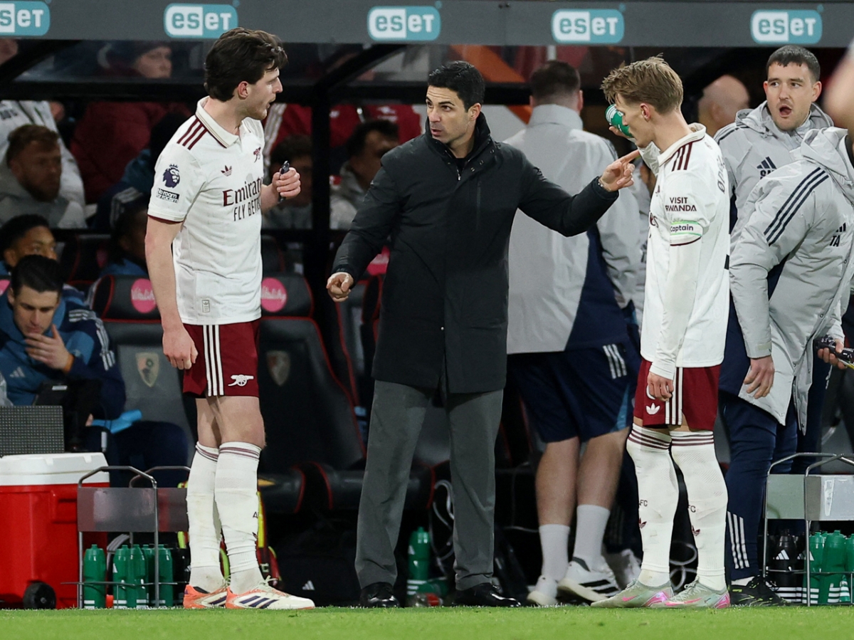 HLV Arteta có một số sự điều chỉnh trong thời gian cuối trận (Ảnh: Reuters)
