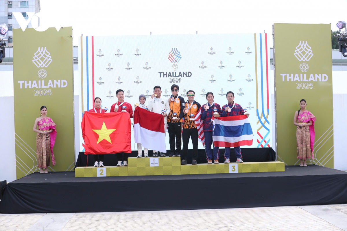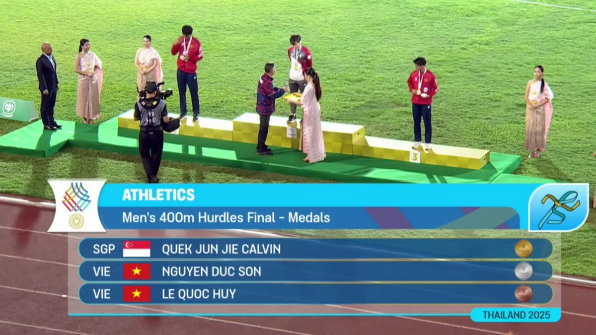 Ở môn điền kinh, Quách Thị Lan tiếp tục khẳng định đẳng cấp khi giành HCV nội dung 400m vượt rào nữ với thành tích 56 giây 85. Nguyễn Trung Cường cũng tỏa sáng ở cự ly 3.000m vượt chướng ngại vật nam, trong khi Nguyễn Thị Oanh khép lại ngày thi đấu bằng tấm HCV 10.000m nữ, cho thấy sự bền bỉ và bản lĩnh của “nữ hoàng điền kinh” Việt Nam.