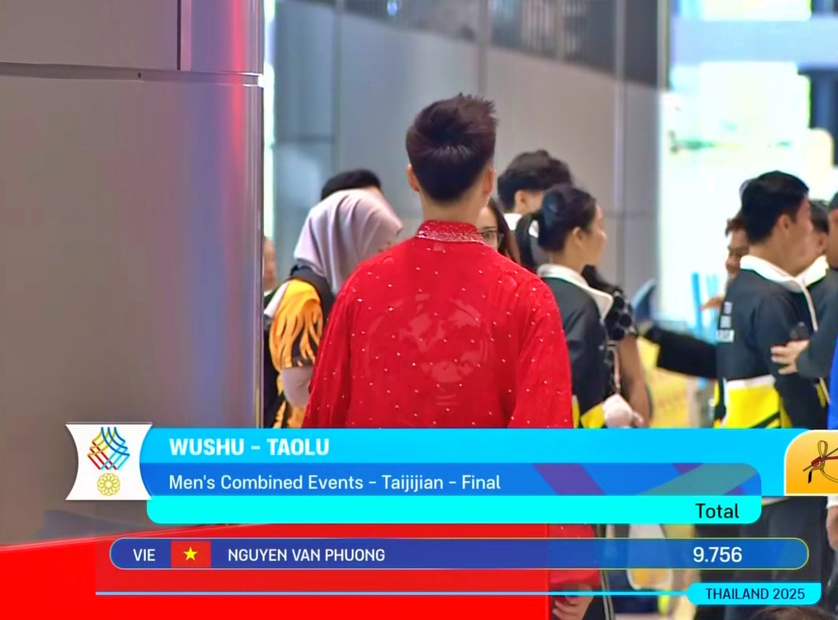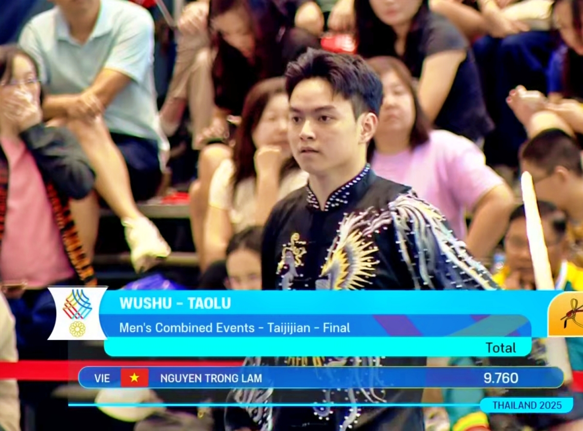 WUSHU: Trương Văn Chưởng đánh bại võ sĩ người Lào với tỉ số 2-0 ở nội dung tán thủ 70kg để giành HCV cho Đoàn Thể thao Việt Nam. Đây là tấm HCV thứ 2 của Wushu ở SEA Games 33 và cũng là tấm HCV thứ 2 của Việt Nam trong ngày thi đấu 15/12.