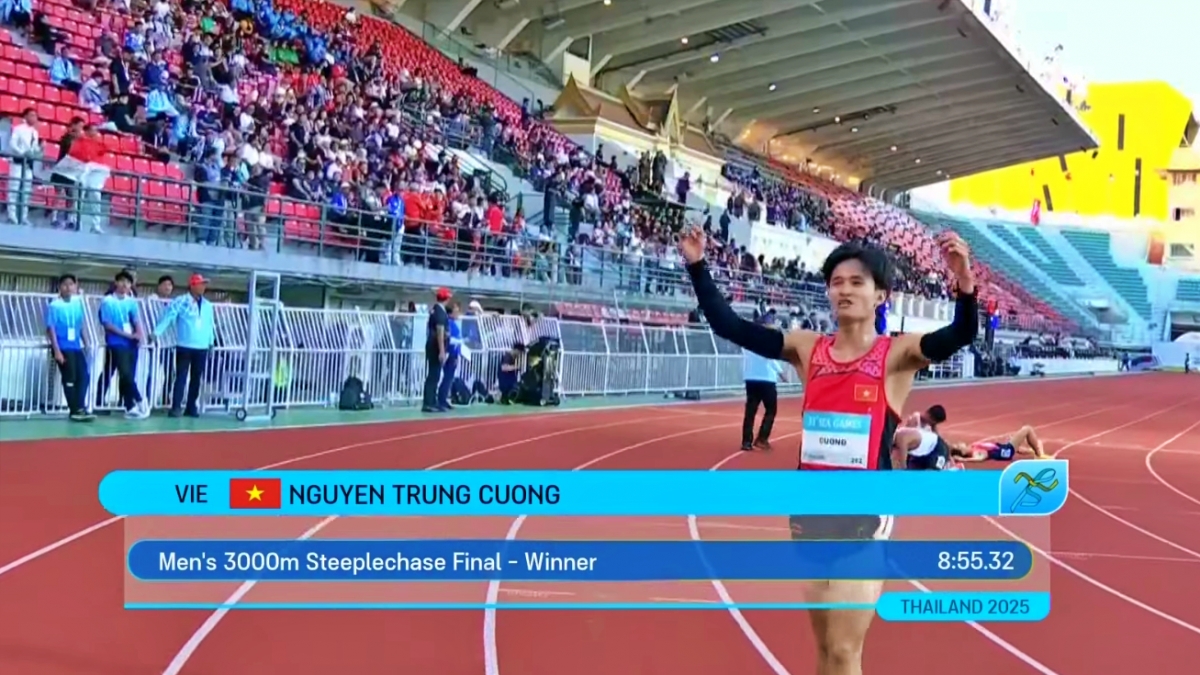 ĐIỀN KINH: Nguyễn Trung Cường giành HCV ở nội dung chạy 3000m vượt chướng ngại vật nam với thành tích 8 phút 55 giây 32.
