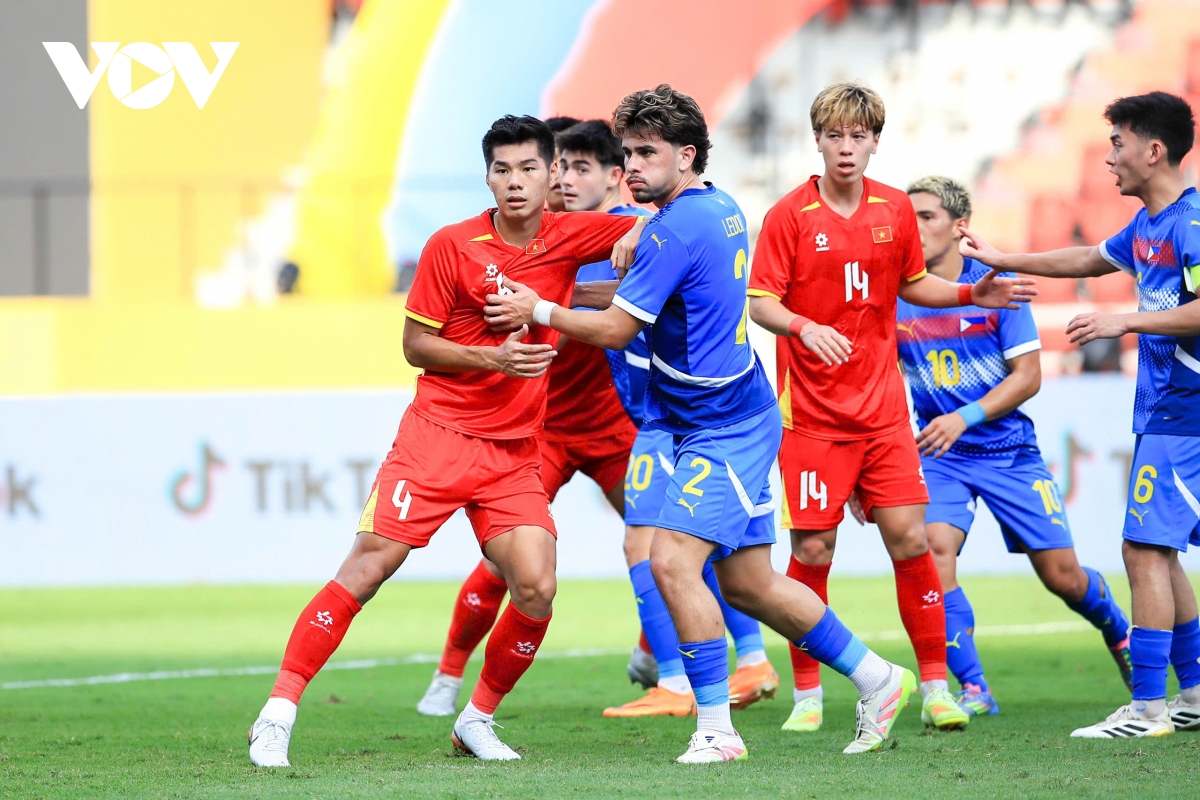 BÓNG ĐÁ: Kết thúc 45 phút đầu tiên của trận bán kết môn bóng đá nam SEA Games 33, U22 Việt Nam và U22 Philippines tạm hòa nhau 0-0.