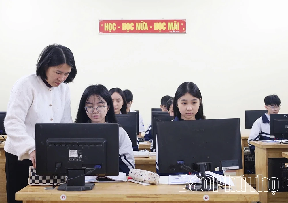 Cô và trò Trường THCS Vân Cơ, phường Nông Trang thi đua dạy tốt, học tốt.
