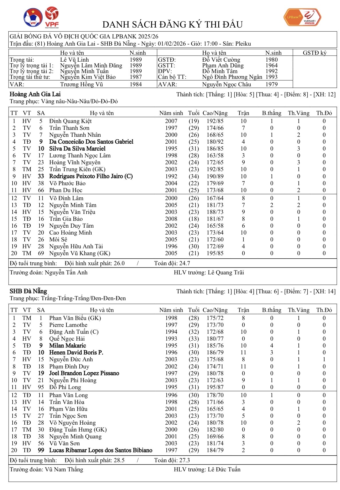Đà Nẵng thậm chí còn đối mặt tình thế khó khăn hơn. Đội bóng sông Hàn xếp cuối bảng với 7 điểm sau 11 trận. Sau khi chỉ trụ hạng ở vòng đấu cuối mùa trước, thầy trò HLV Lê Đức Tuấn sớm xác định mục tiêu thoát khỏi khu vực nguy hiểm càng sớm càng tốt. Một chiến thắng trên sân Pleiku Arena sẽ giúp Đà Nẵng cải thiện đáng kể thứ hạng, nhưng đây là thử thách không hề dễ dàng.