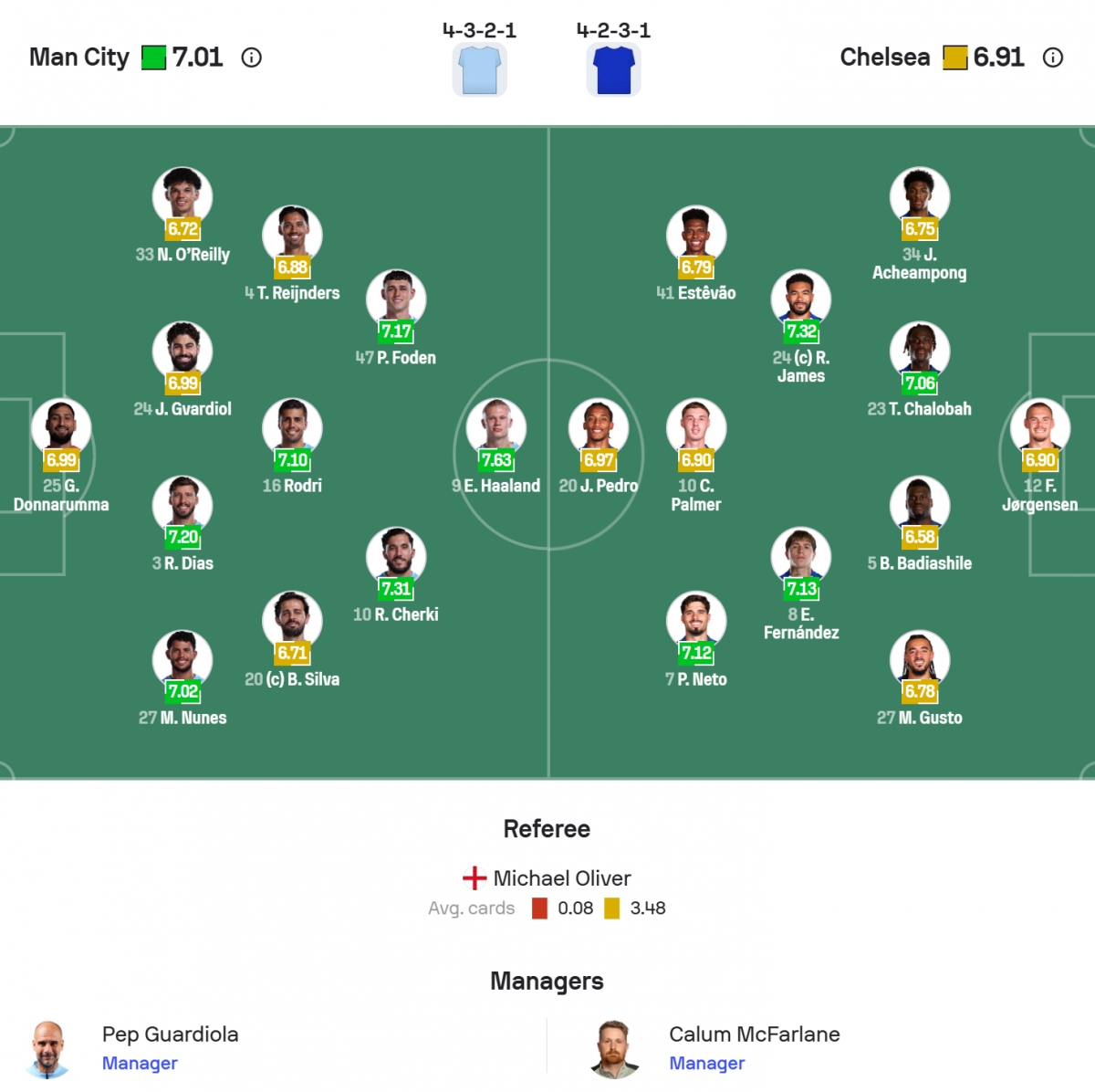 Trong những phút bù giờ còn lại, Chelsea suýt chút nữa tạo nên bất ngờ, nhưng cú dứt điểm của Enzo Fernandez không đủ hiểm để đánh bại thủ môn Man City. Chung cuộc, Man City và Chelsea hòa nhau với tỉ số 1-1.