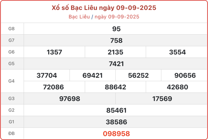 XSBL 9/9, kết quả xổ số Bạc Liêu ngày 9/9/2025.