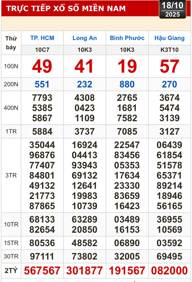 Kết quả xổ số hôm nay của xổ số miền Nam (XSMN): TP HCM, Long An, Bình Phước, Hậu Giang