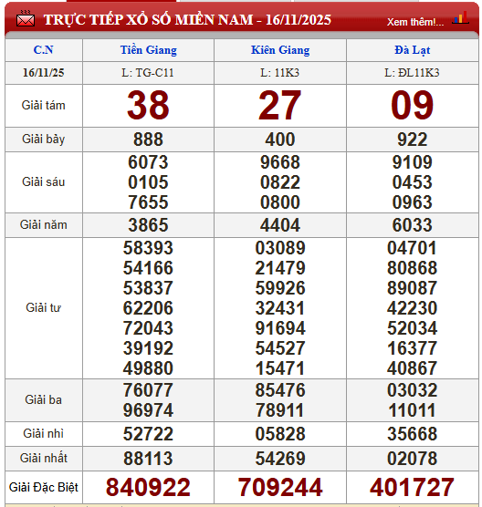 KQXSMN - Kết quả xổ số miền Nam hôm nay Chủ nhật ngày 16/11/2025.