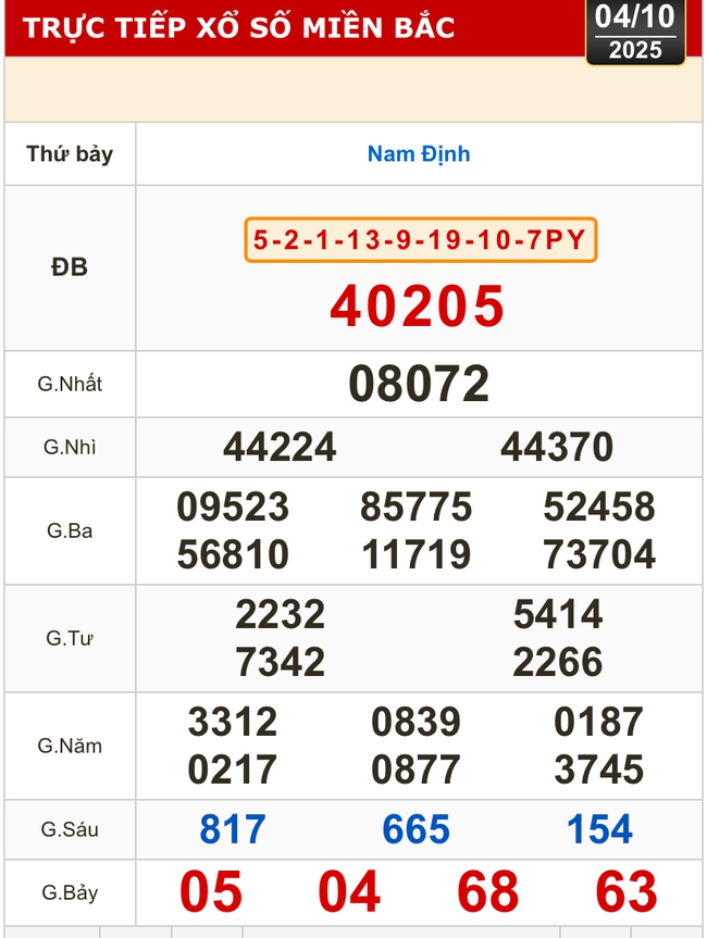 Kết quả xổ số hôm nay của Công ty Xổ số kiến thiết Nam Định có giải đặc biệt là 40205
