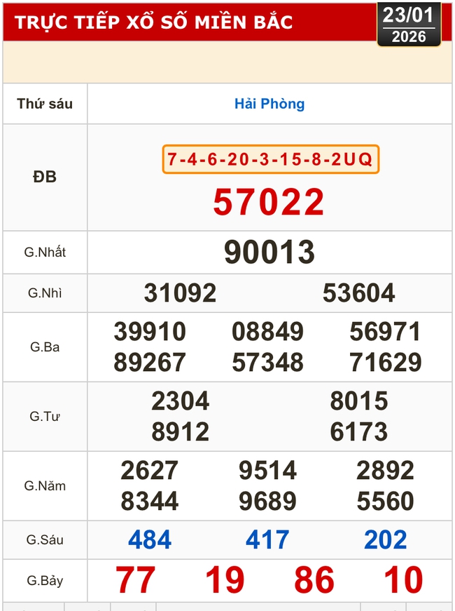 Kết quả xổ số hôm nay của xổ số miền Bắc (XSMB): Hải Phòng