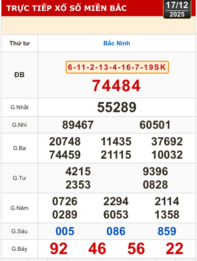 Kết quả xổ số miền Bắc (XSMB): Bắc Ninh