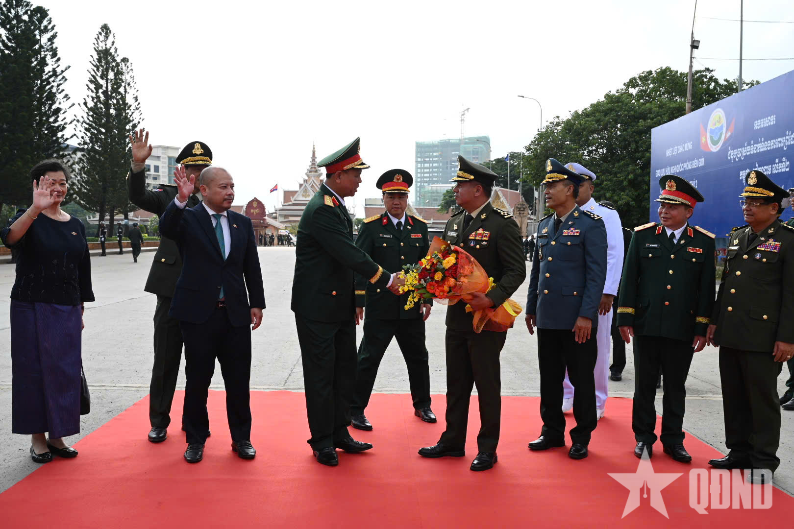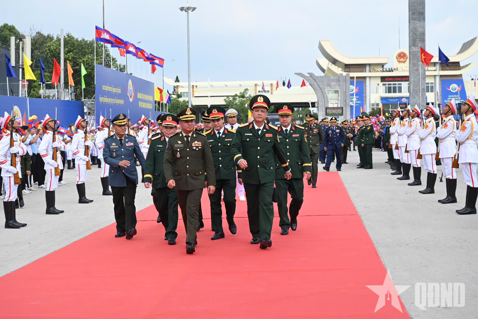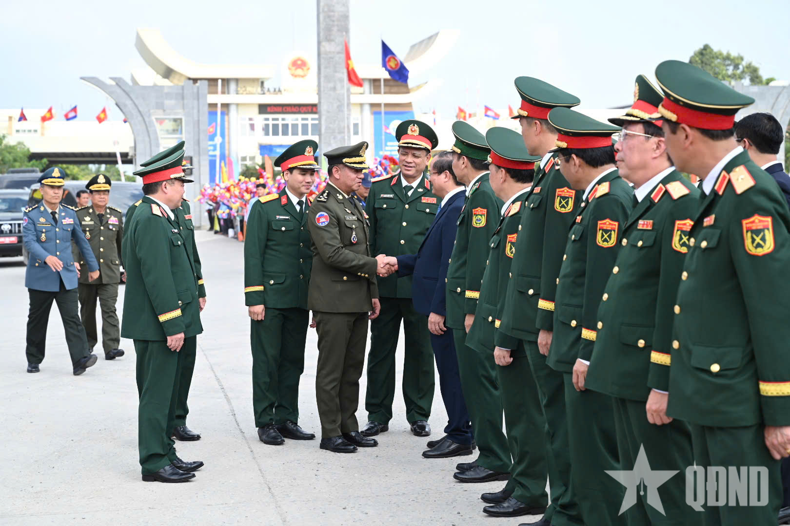 Thượng tướng Nguyễn Trường Thắng, Ủy viên Trung ương Đảng, Thứ trưởng Bộ Quốc phòng chủ trì lễ tiễn Đại tướng Tea Seiha, Phó thủ tướng, Bộ trưởng Bộ Quốc phòng và đoàn Campuchia về nước tại cửa khẩu quốc tế Mộc Bài.