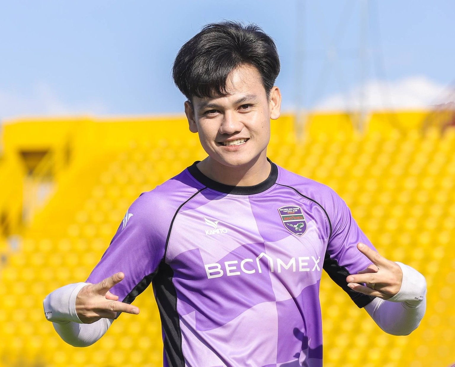 Hậu vệ Hồ Tấn Tài rạng ngời bên ống kính